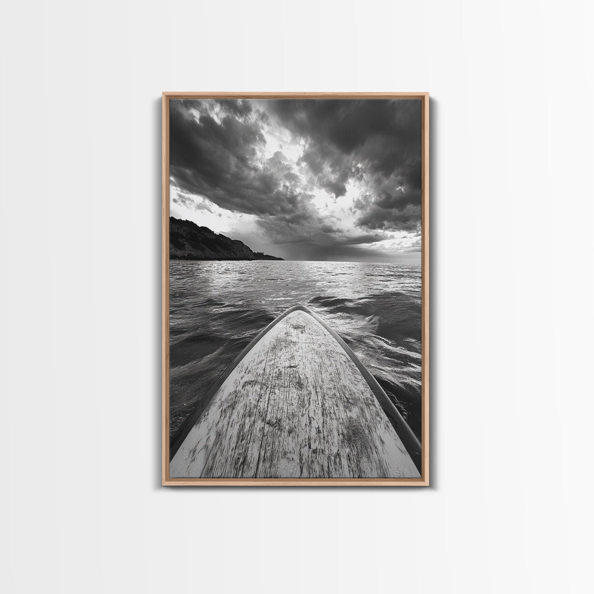 Stormy Sea, Paddle Board, Dramatic Sky, Ocean Adventure, Framed Canvas Print, Den Wall Art, Nautical Minimalist Decor, bedroom wall art