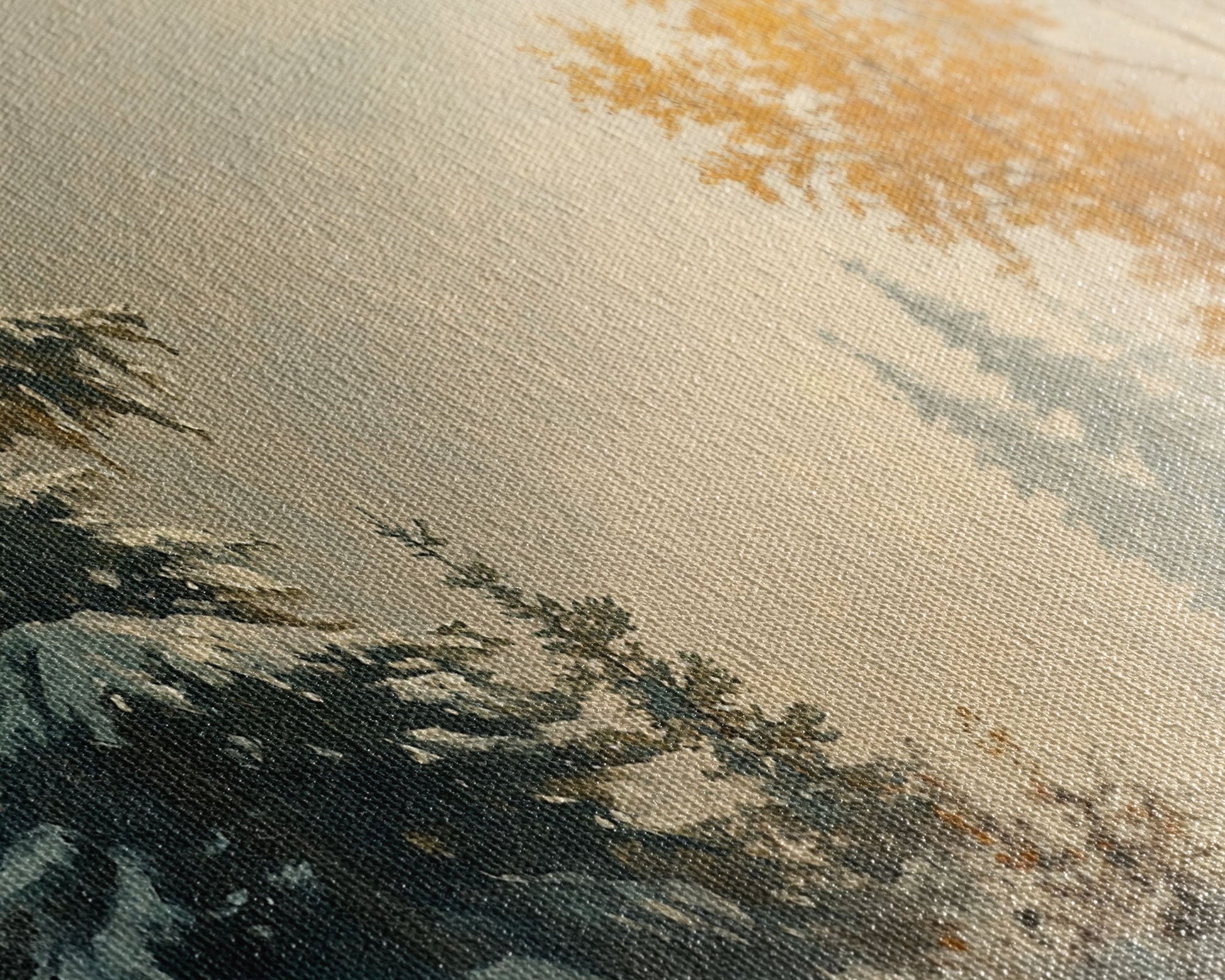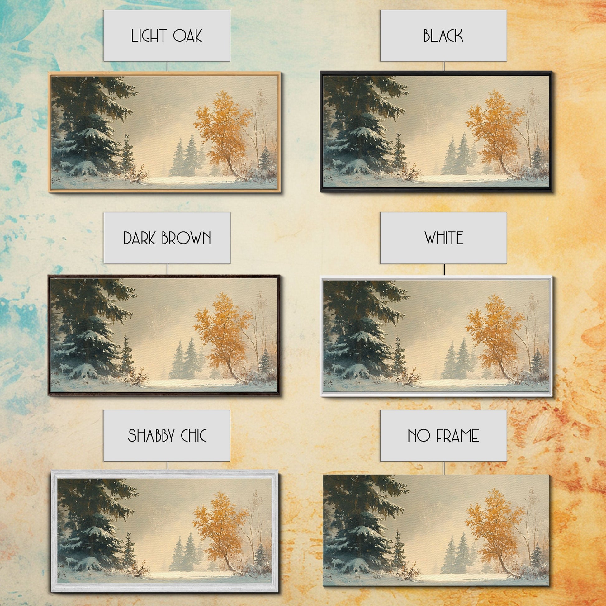 Subdued Winter Landscape, Moody Landscape Painting, Framed Canvas Print, classic Christmas wall art for holiday decor