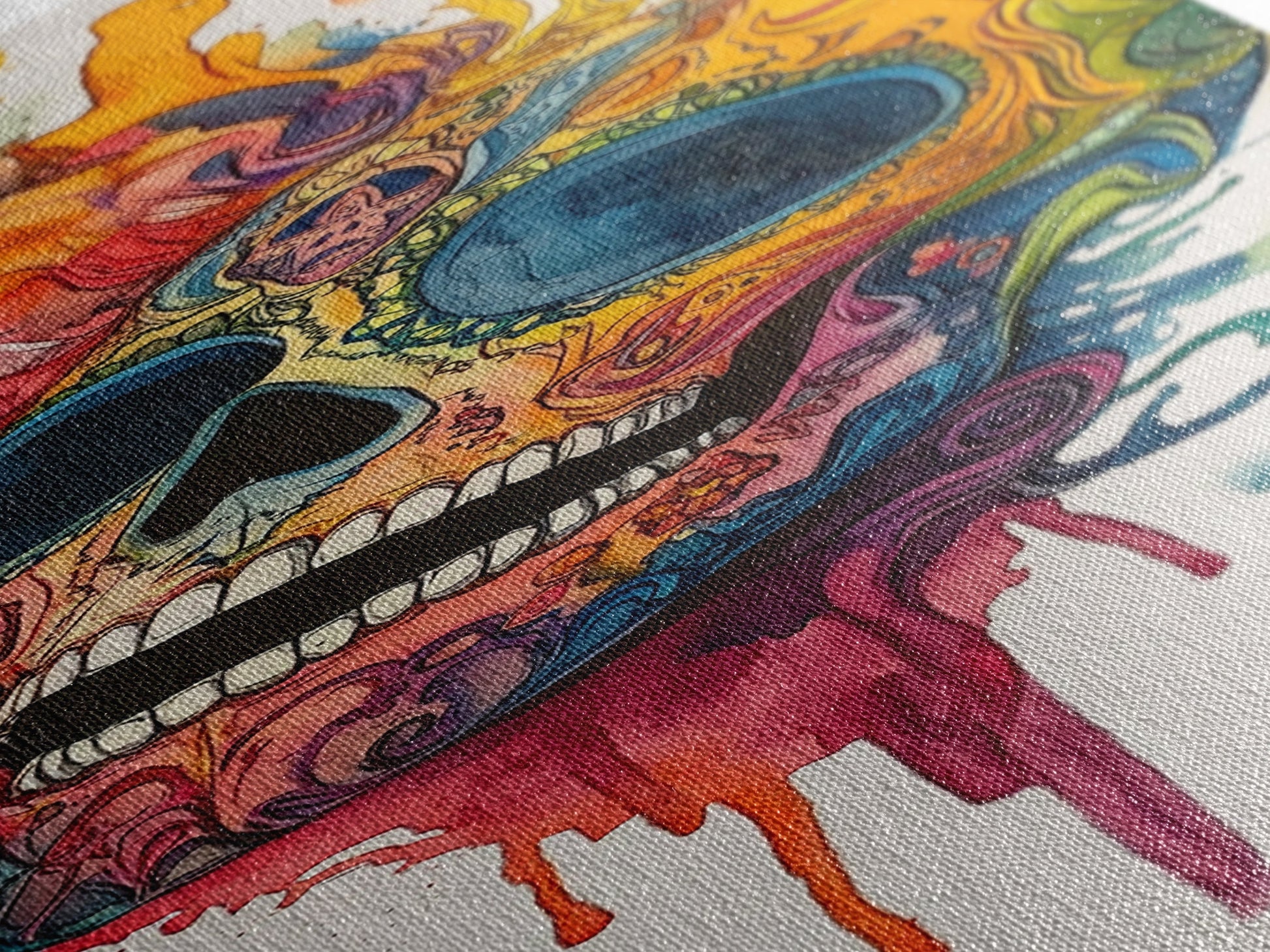 Sugar Skull Painting Print, Mexicano Wall Art, Framed Canvas, Tall Narrow Art, Skinny Accent Piece, Skull Painting, Skull Art, Chicano Art