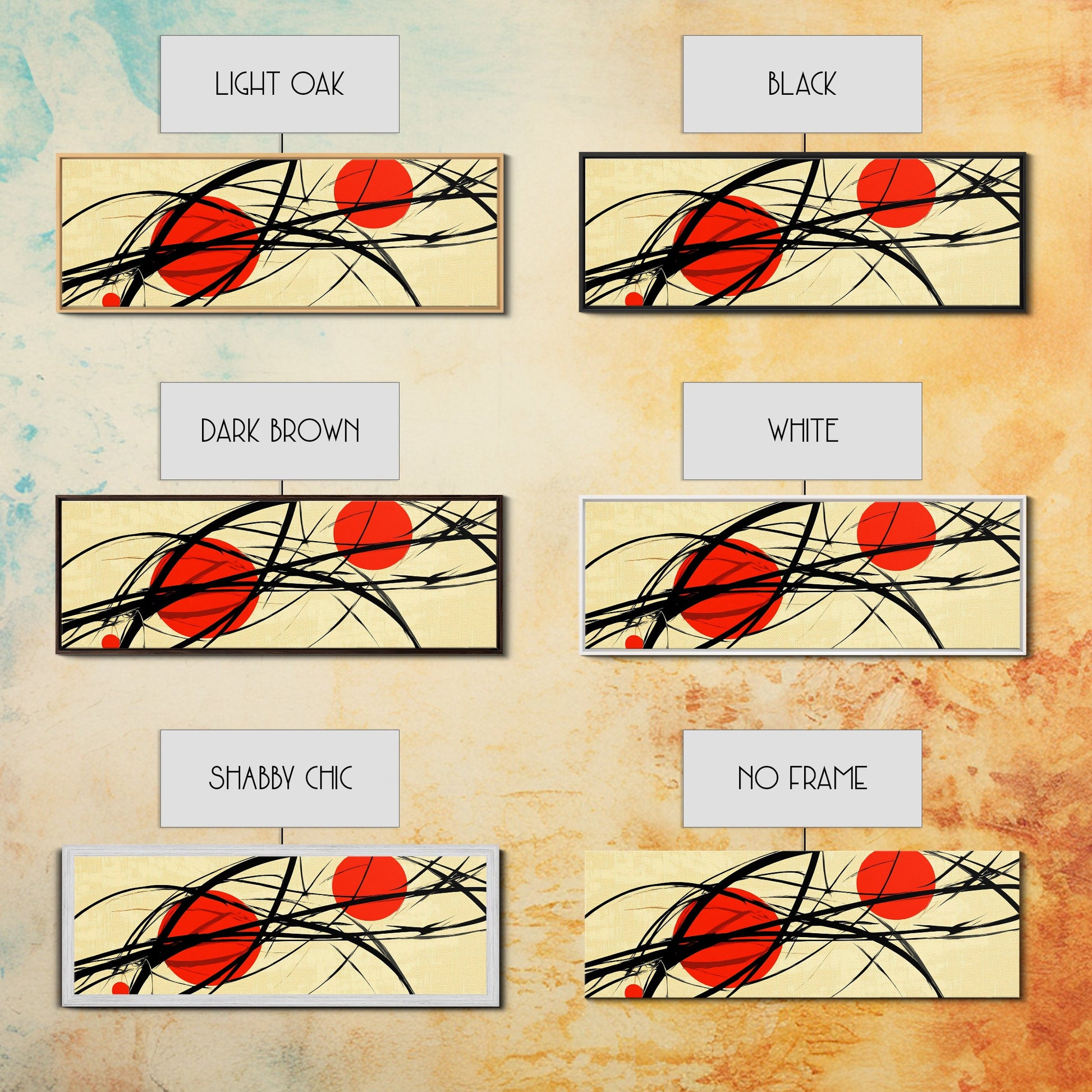Sun Streaks - 3 Red Suns with Black Streams, Framed Canvas Print, MCM Style Geometric Abstract Wall Art