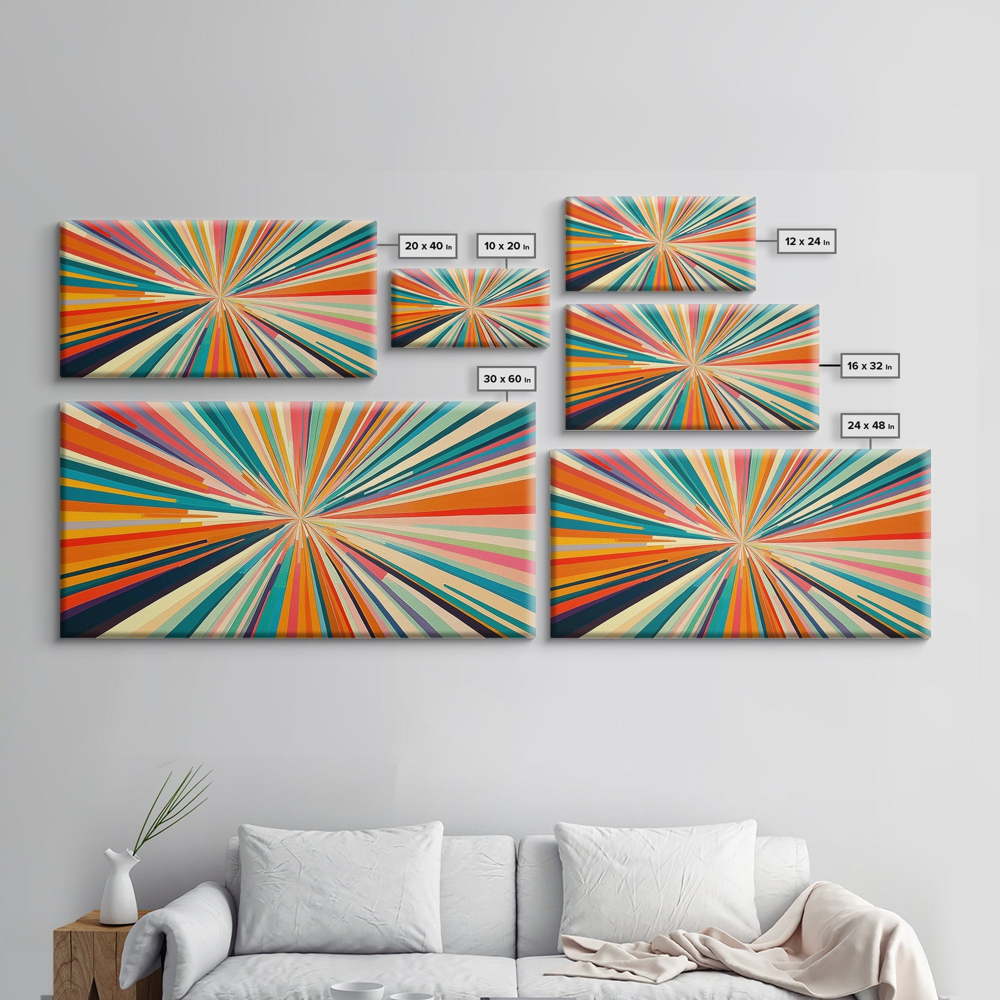 Sunburst Canvas Wall Art Canvas Print | Horizontal Pastel Color Sunset Print | Panoramic Abstract MCM Style Wall Art | Large Wide Print