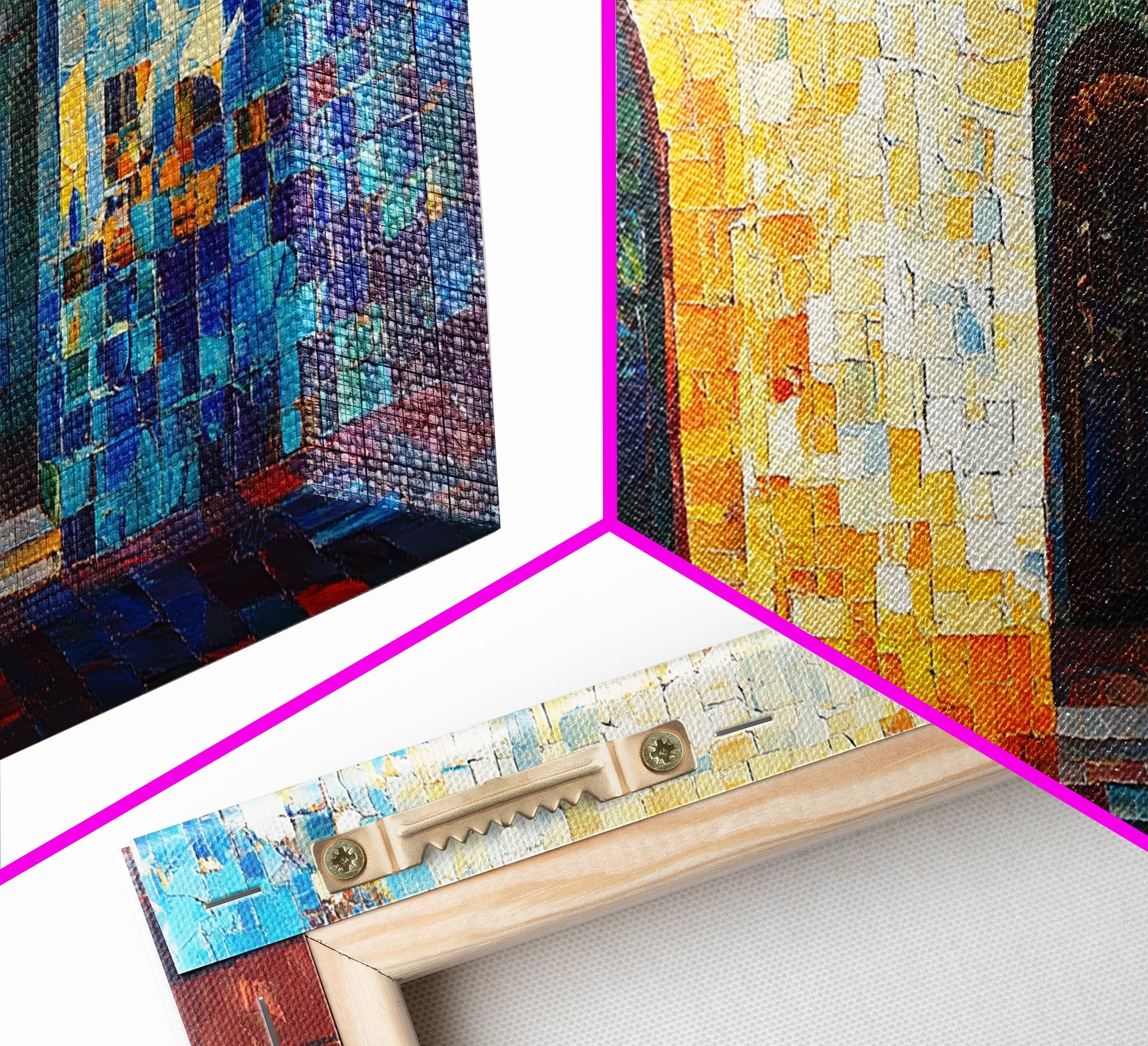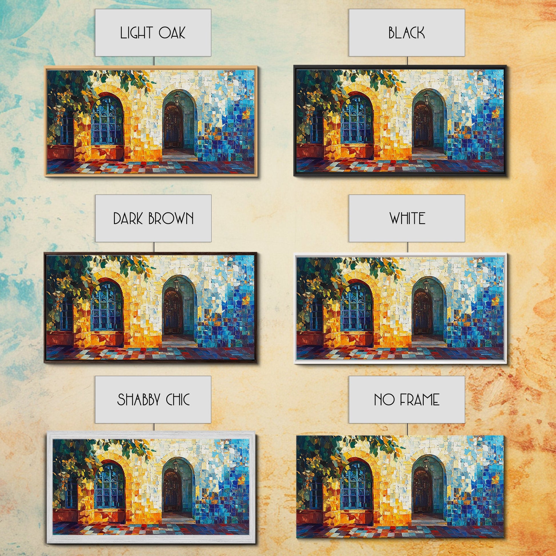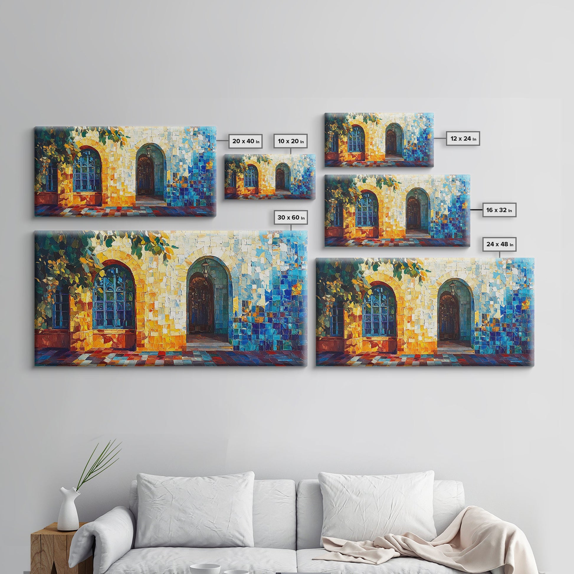 Sunlit Arched Window Framed Canvas Print - Rustic Moroccan Wall Art - Coastal Landscape Art - Farmhouse Decor Bedroom Art