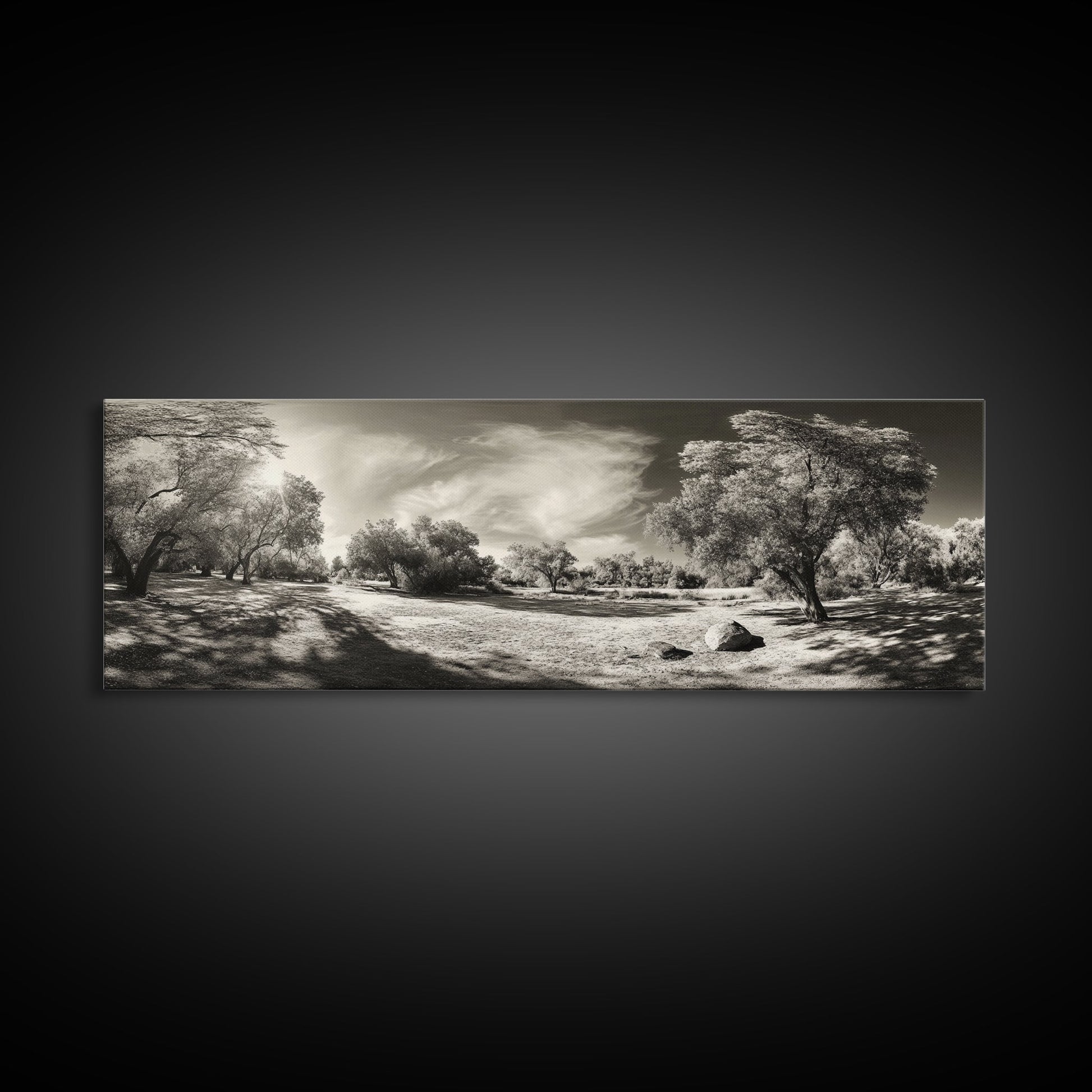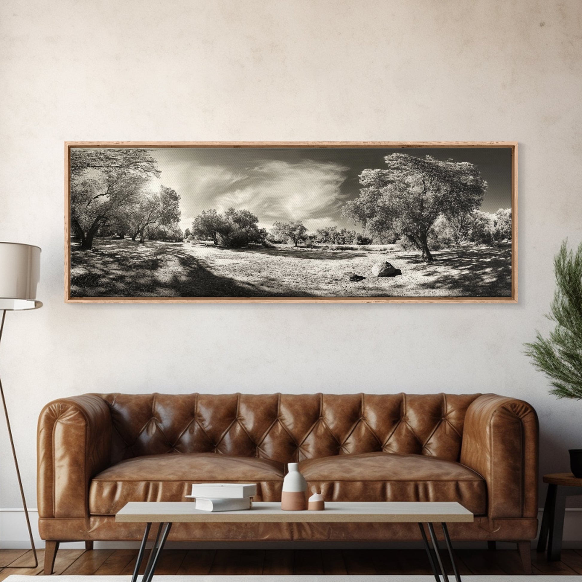Sunlit Forest Meadow, Golden Light Trees, Canvas Print, Living Room Wall Art, Autumn Nature Decor, Rustic Neutral Wall Art
