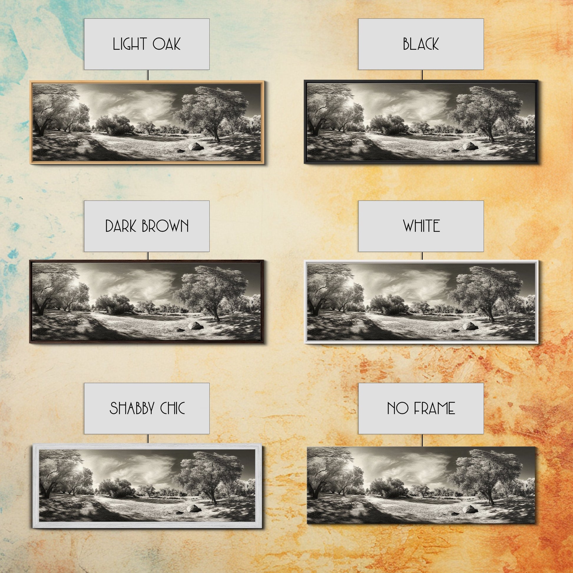 *Optional frames add a total of 1.5 inches to each dimension, for example a 10x20 canvas with a frame will be 11.5 by 21.5 inches total. All framed canvas are 1.5" total depth.