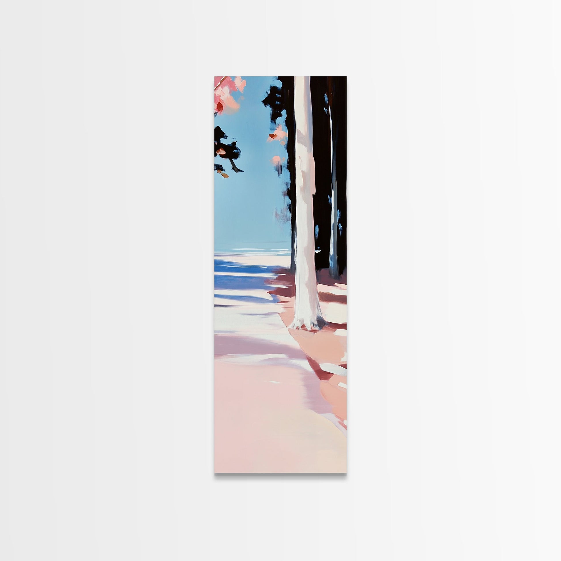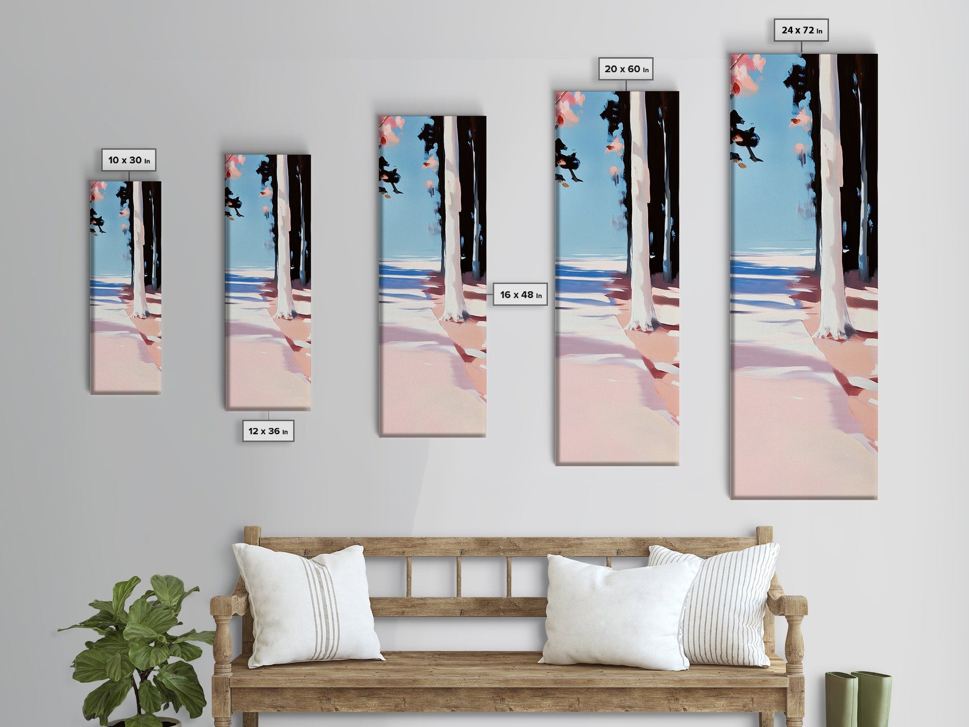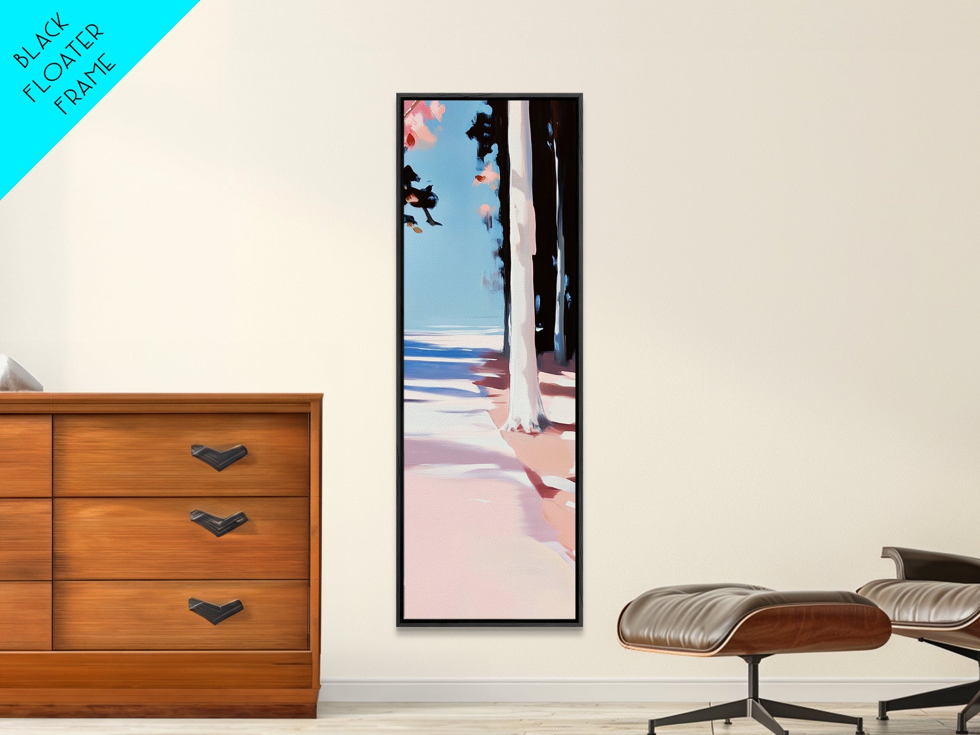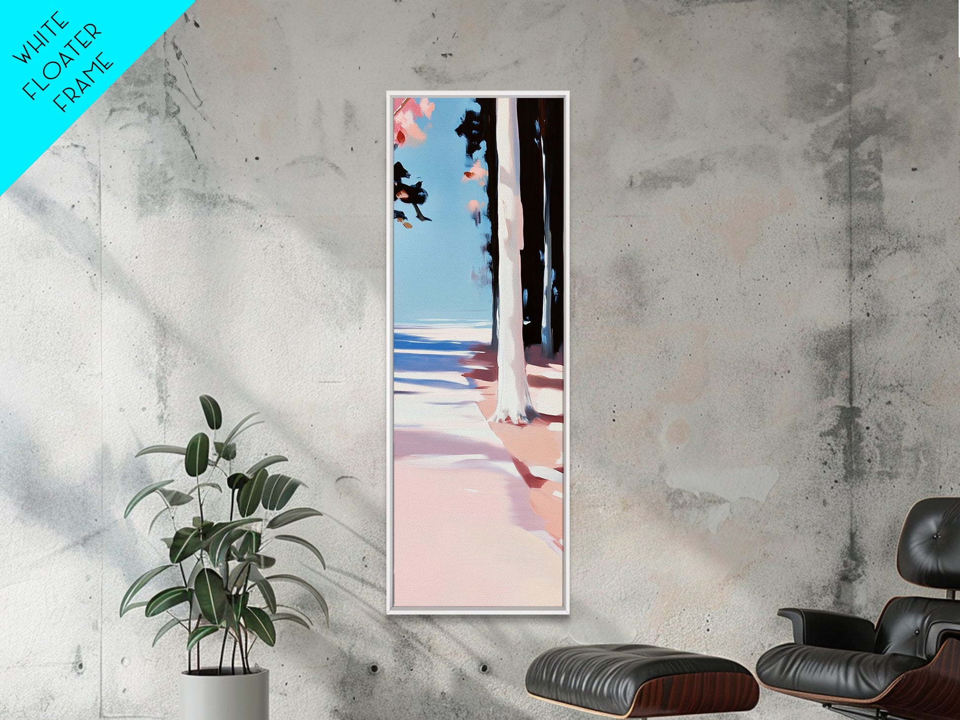 Sunlit Forest, Tree Shadows, Nature Wall Art, Framed Canvas Print, Rustic Aesthetic, Cozy Decor, Cabin Artwork, Minimalist Design