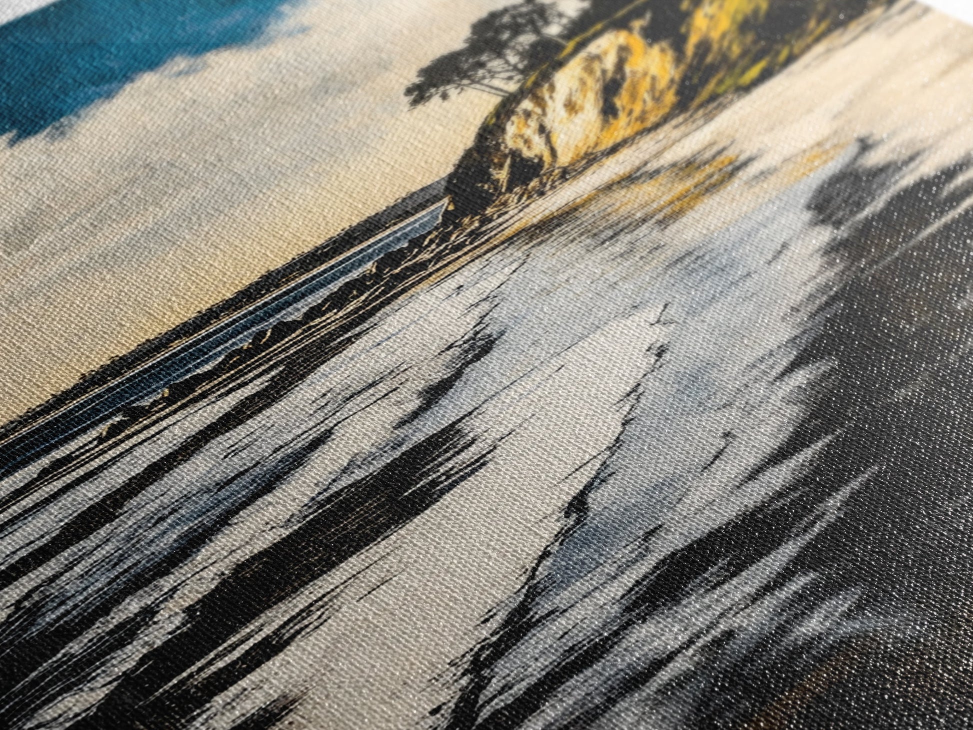 Most of our canvases are made in the USA, with the exception of canvases ordered with the light oak unstained frames, and any large canvases (24x48, 30x60, 16x48 and 20x60) ordered WITH a frame. These are temporarily made in and shipped from Europe, while we try to find a more consistent supplier in the USA.
