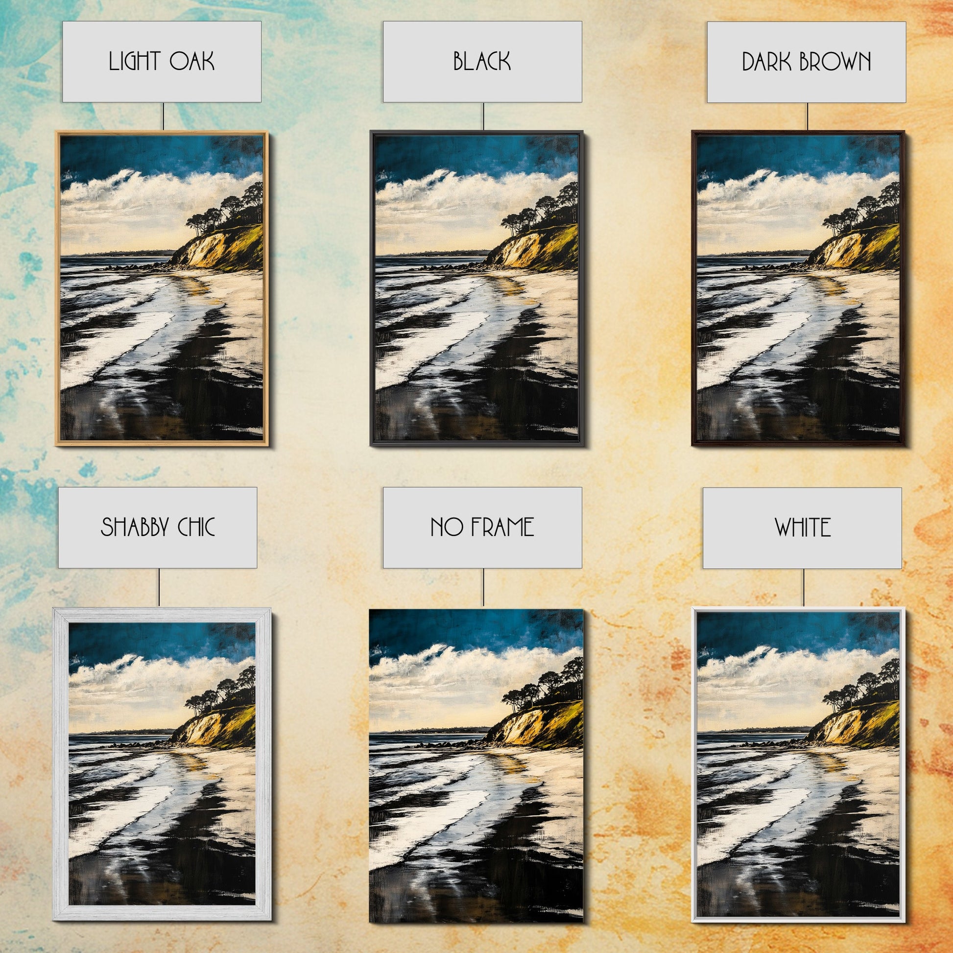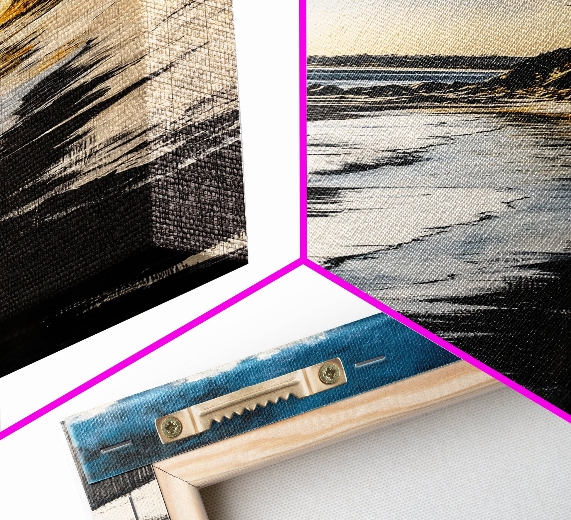 Sunset Beach, Cliffside View, Ocean Landscape, Nature Wall Art, Framed Canvas Print, Coastal Home Decor, Golden Hour, Serene Scene