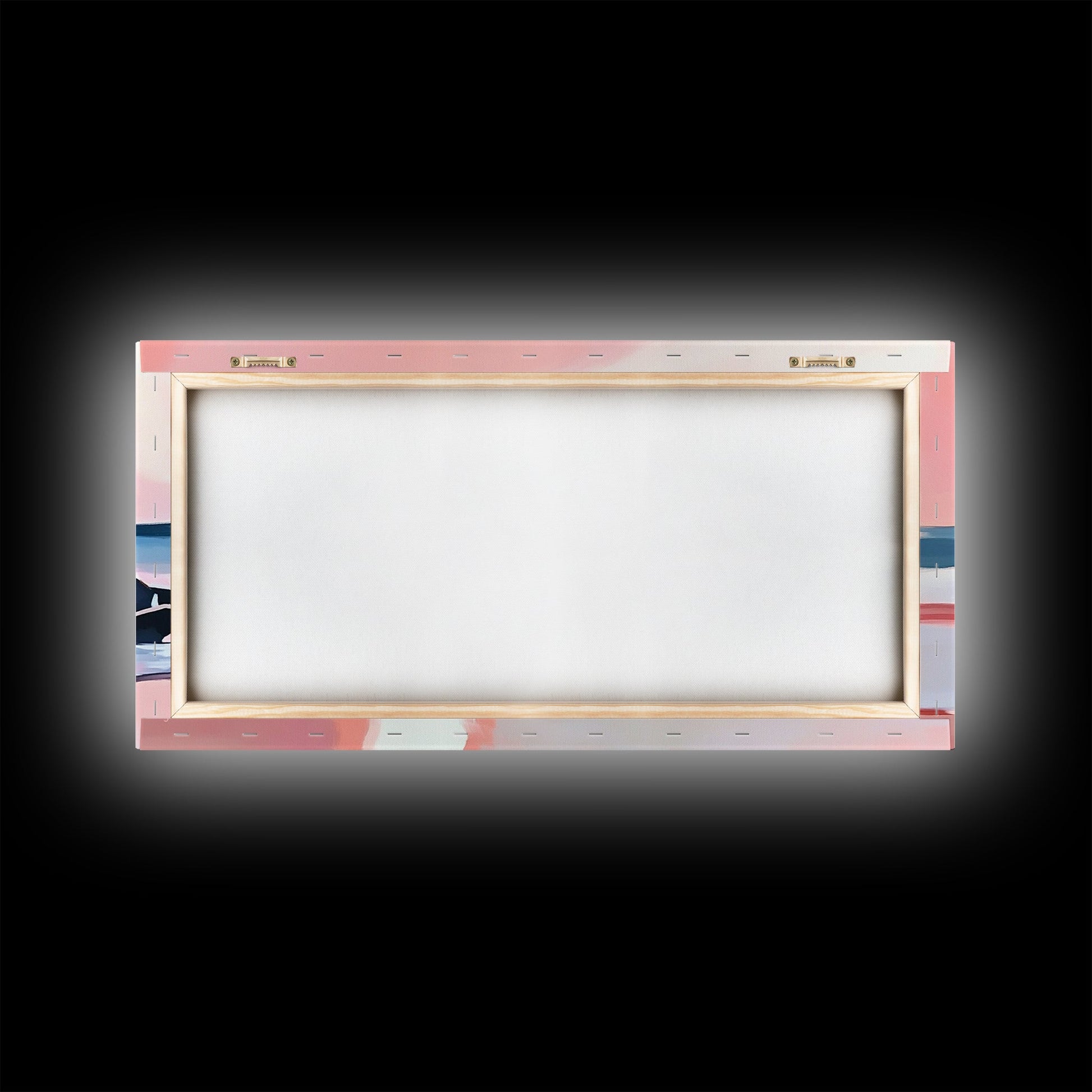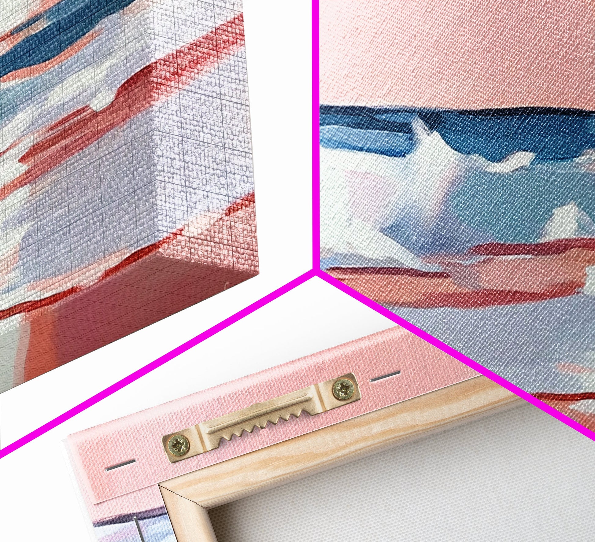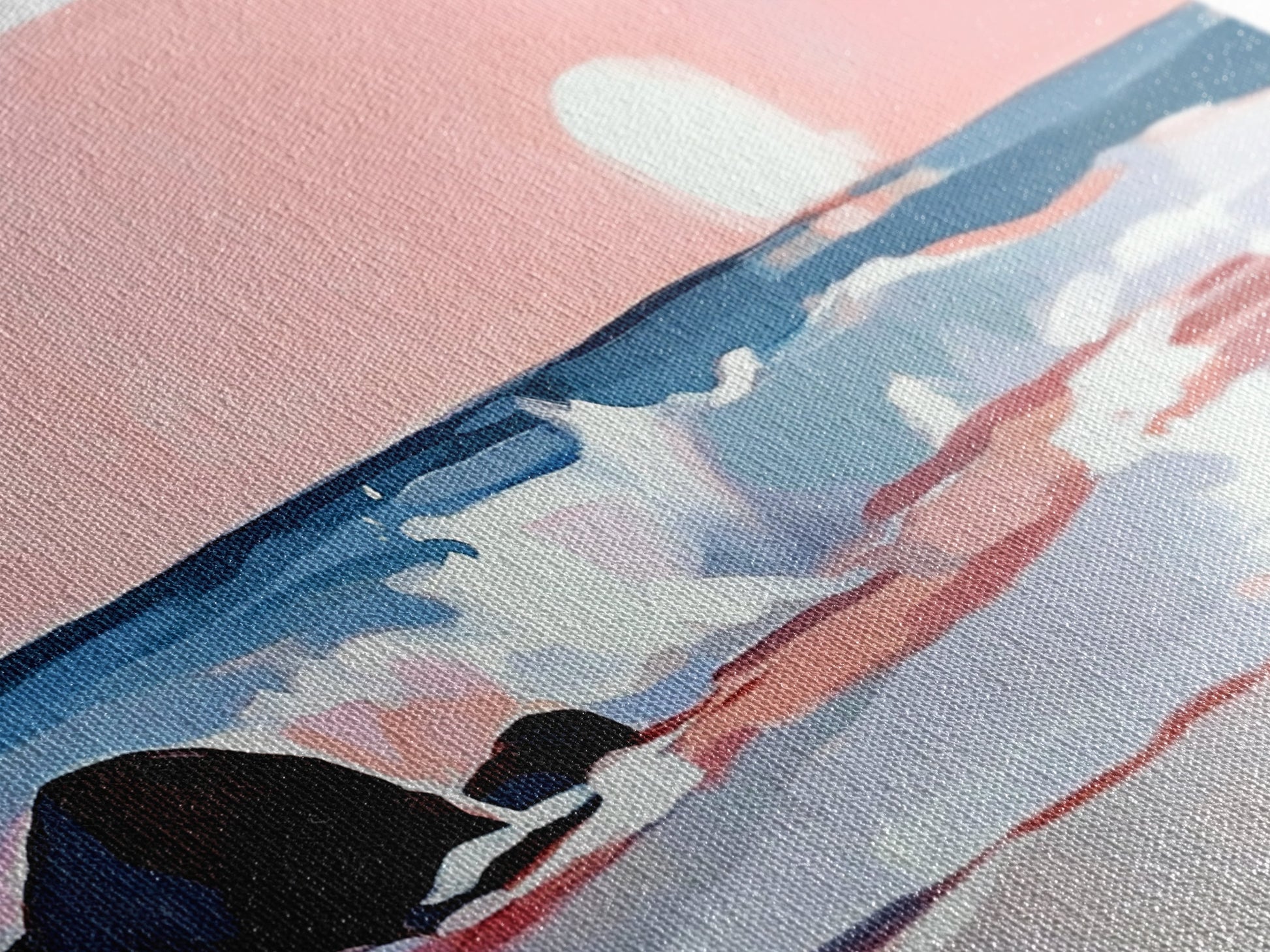 Sunset Beach, Ocean Waves, Framed Canvas Print, Coastal Wall Art, Pink Sky Painting, Living Room Decor, Tropical Seascape