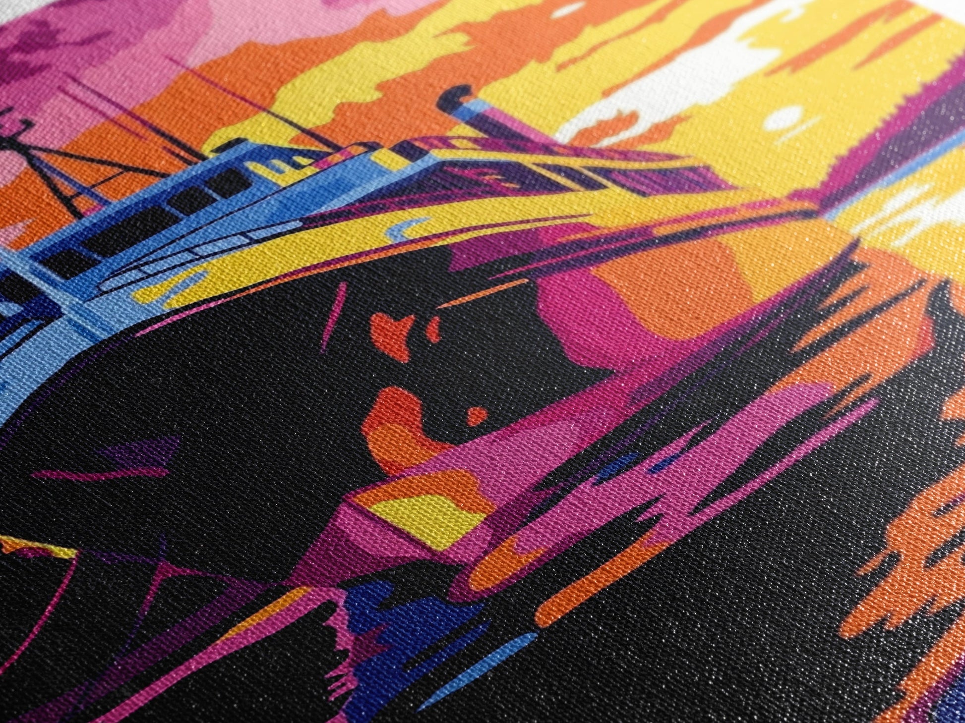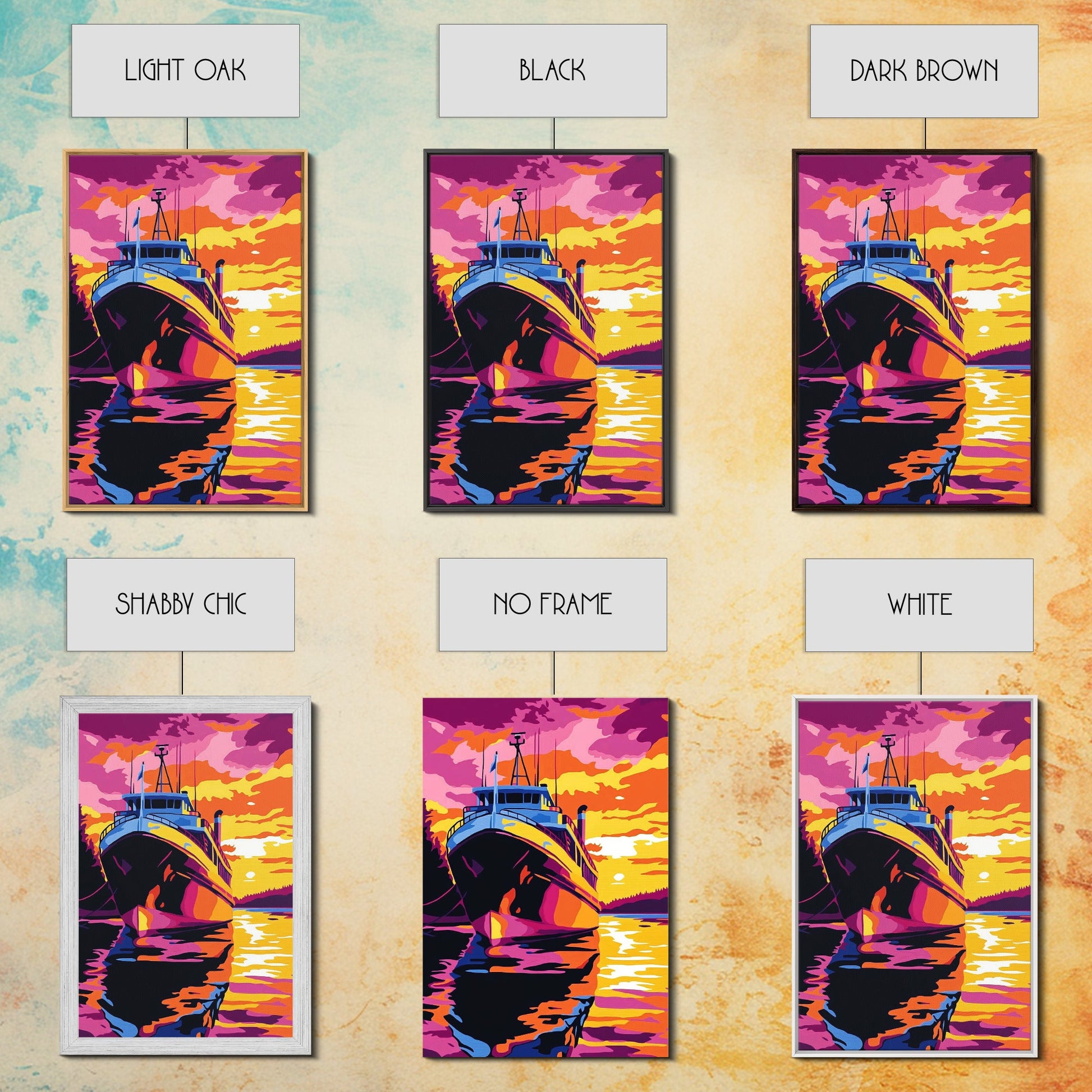 Sunset Boat Art, Nautical Wall Art, Ocean Sunset Painting, Coastal Decor, Vibrant Boat Scene, Framed Canvas Print, Living Room Art