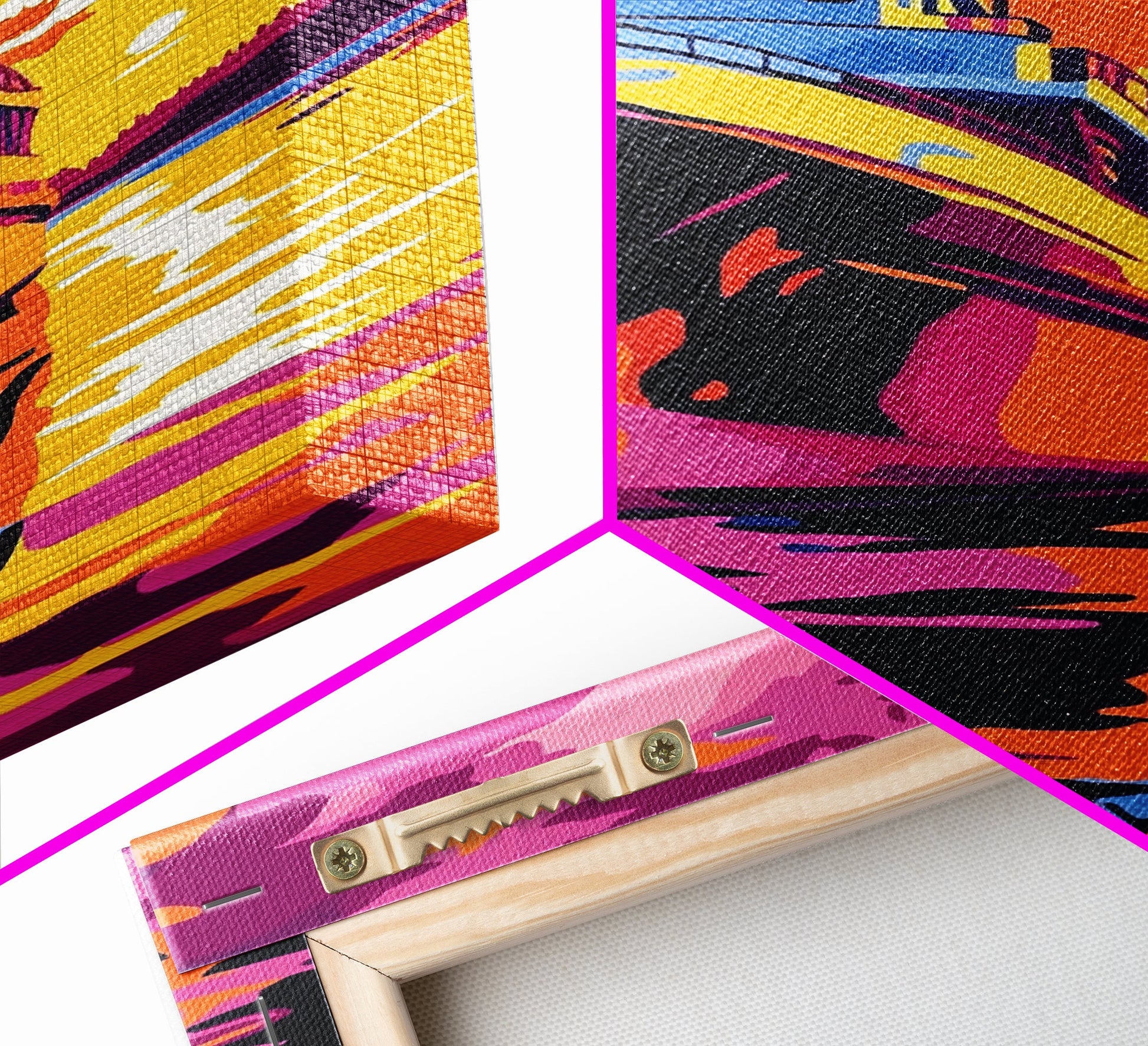 Hello and thank you for taking the time to view our modern high quality giclée artwork! We offer both posters and stretched canvas prints. Our posters are printed on Ultra Matte 60 lb / 230 GSM high quality photo paper, with a thickness of 10 mil. Our canvases are printed on museum grade 350 GSM canvas material with ECO friendly archival grade ink, then hand stretched and stapled over premium, FSC certified and shrink resistant frames. Designed and built to last a lifetime.