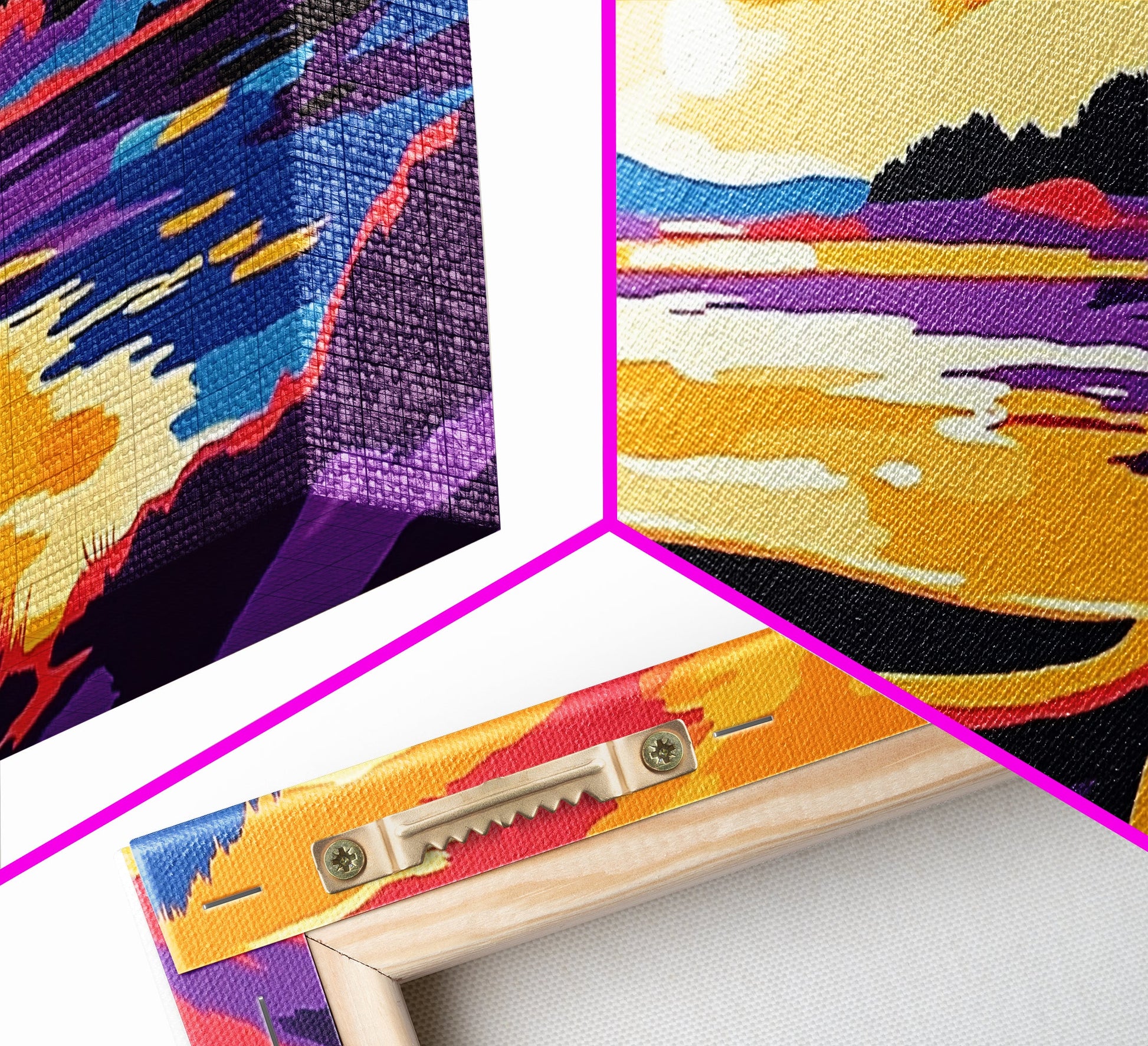 Hello and thank you for taking the time to view our modern high quality giclée artwork! We offer both posters and stretched canvas prints. Our posters are printed on Ultra Matte 60 lb / 230 GSM high quality photo paper, with a thickness of 10 mil. Our canvases are printed on museum grade 350 GSM canvas material with ECO friendly archival grade ink, then hand stretched and stapled over premium, FSC certified and shrink resistant frames. Designed and built to last a lifetime.