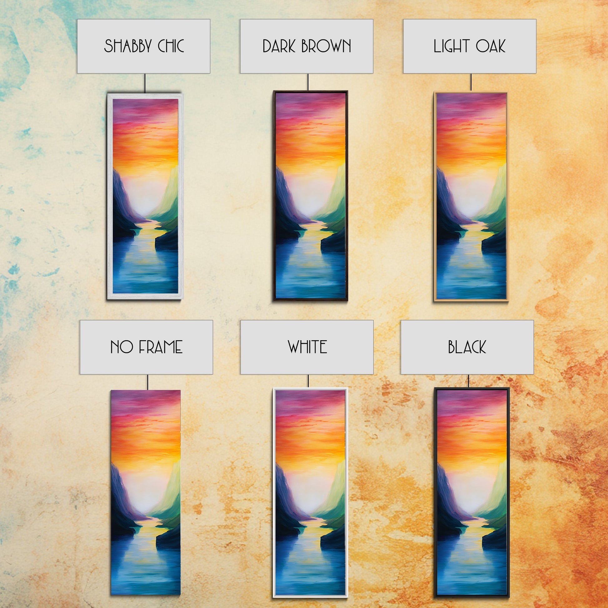 Sunset Canyon, pink orange wall art, lake Tahoe art, framed canvas print, vertical wall art, extra wide art, bedroom art