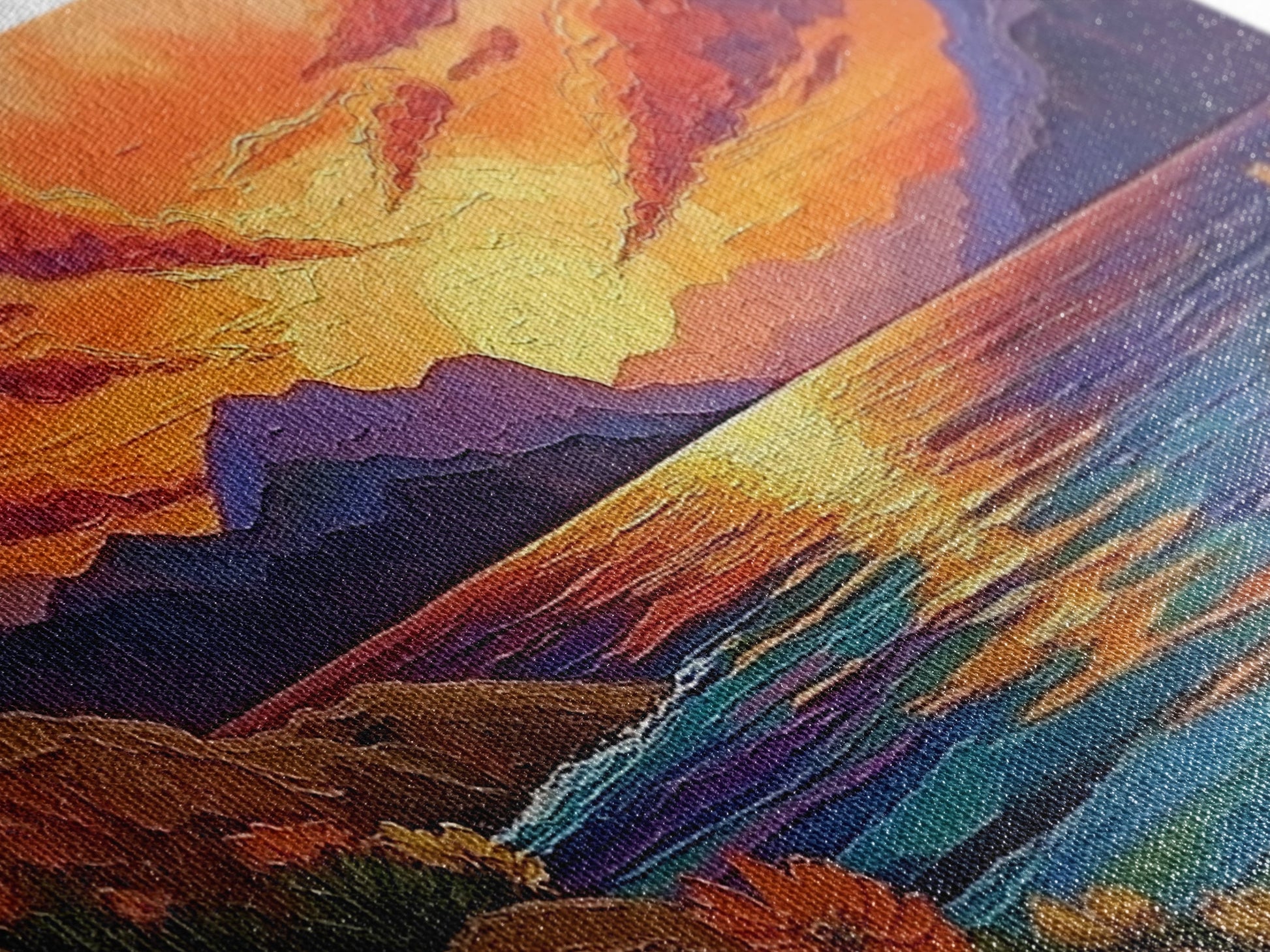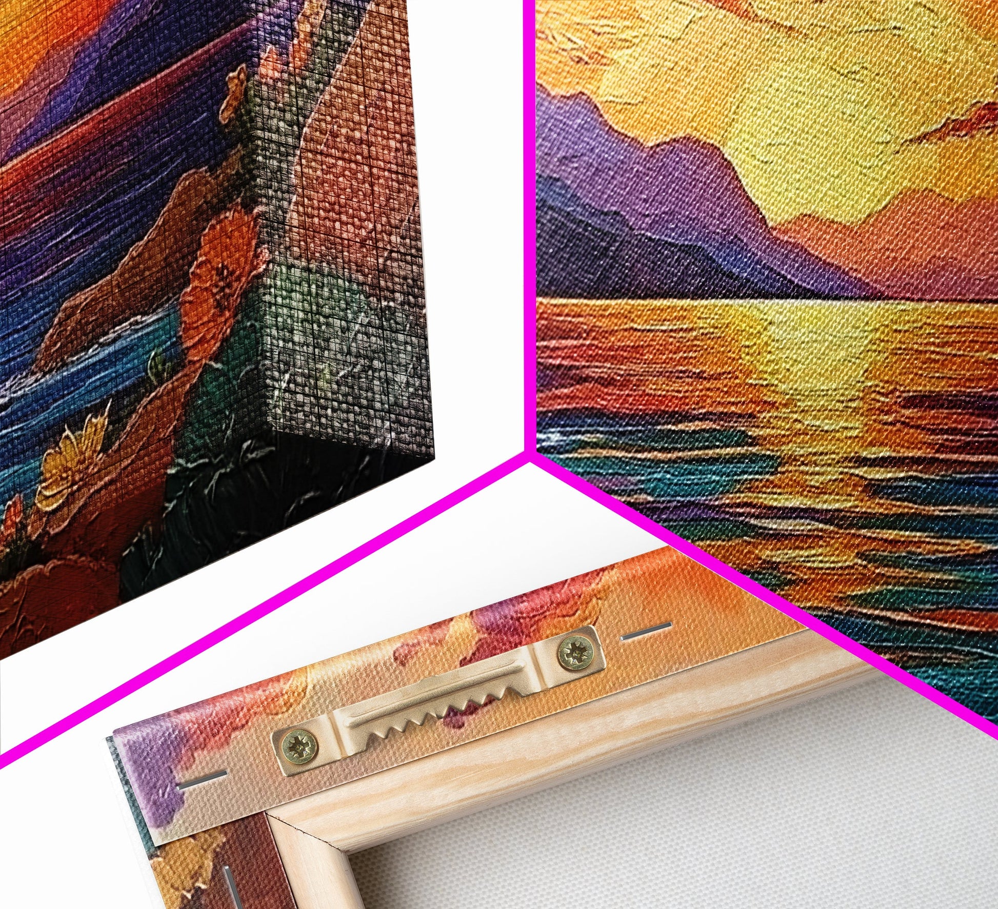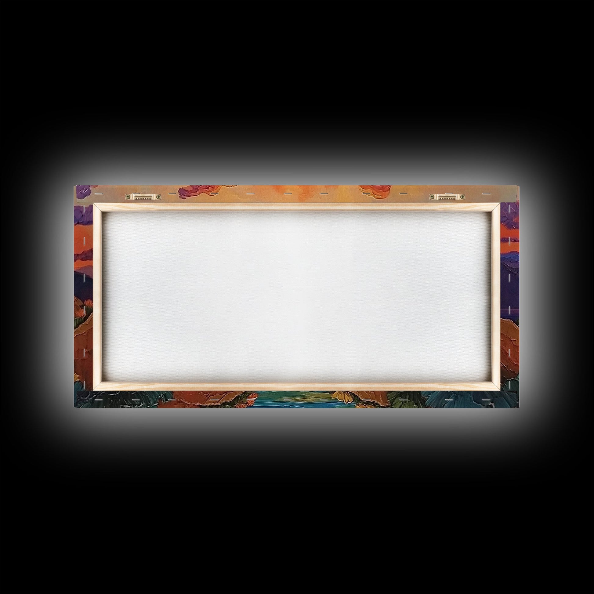 Sunset Coastal, Landscape, Vibrant Colors, Framed Canvas Print, Boho Beach Art, Living Room Wall Decor, Nature Painting, Summer Vibes