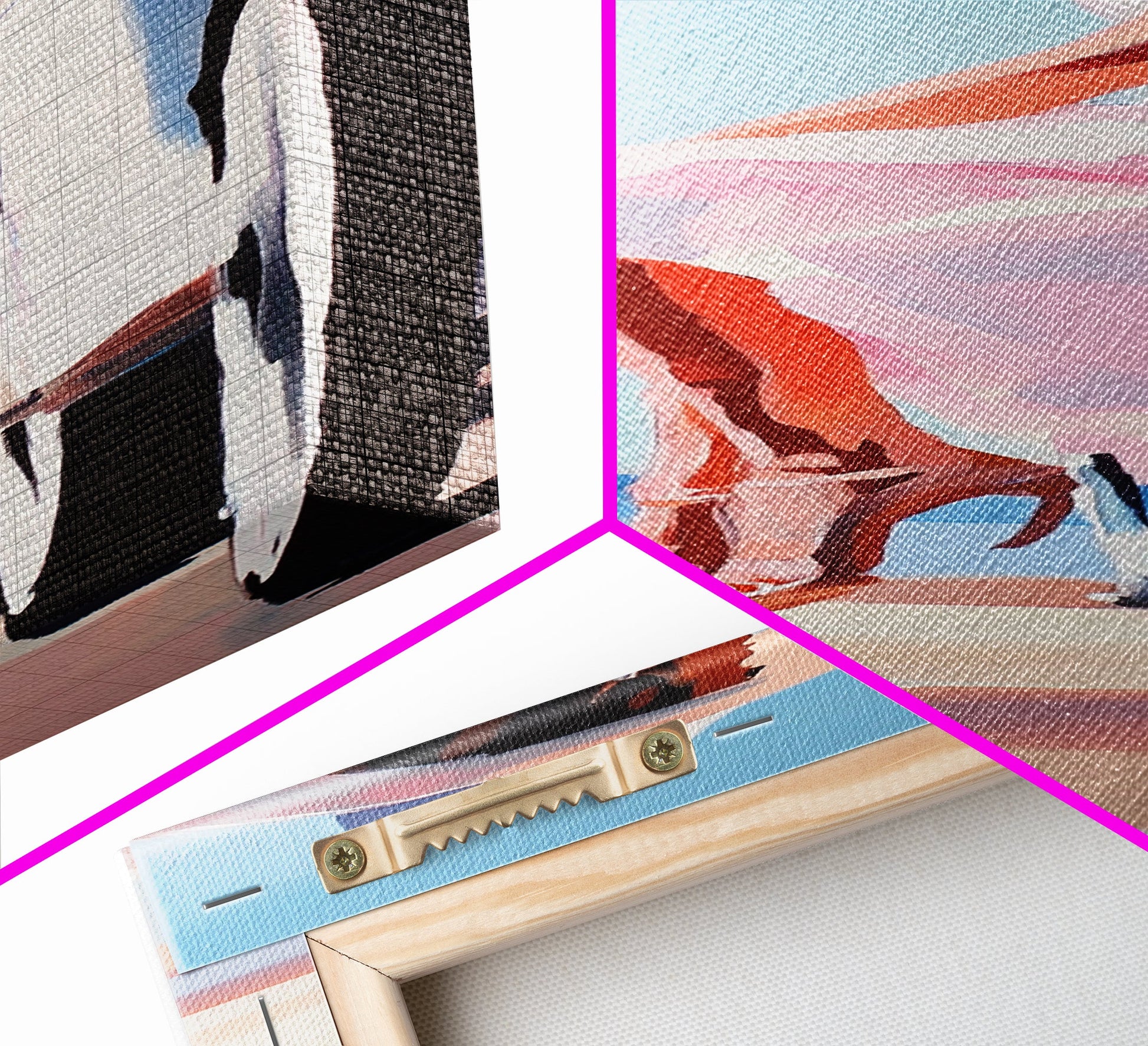 Hello and thank you for taking the time to view our modern high quality giclée artwork! We offer both posters and stretched canvas prints. Our posters are printed on Ultra Matte 60 lb / 230 GSM high quality photo paper, with a thickness of 10 mil. Our canvases are printed on museum grade 350 GSM canvas material with ECO friendly archival grade ink, then hand stretched and stapled over premium, FSC certified and shrink resistant frames. Designed and built to last a lifetime.