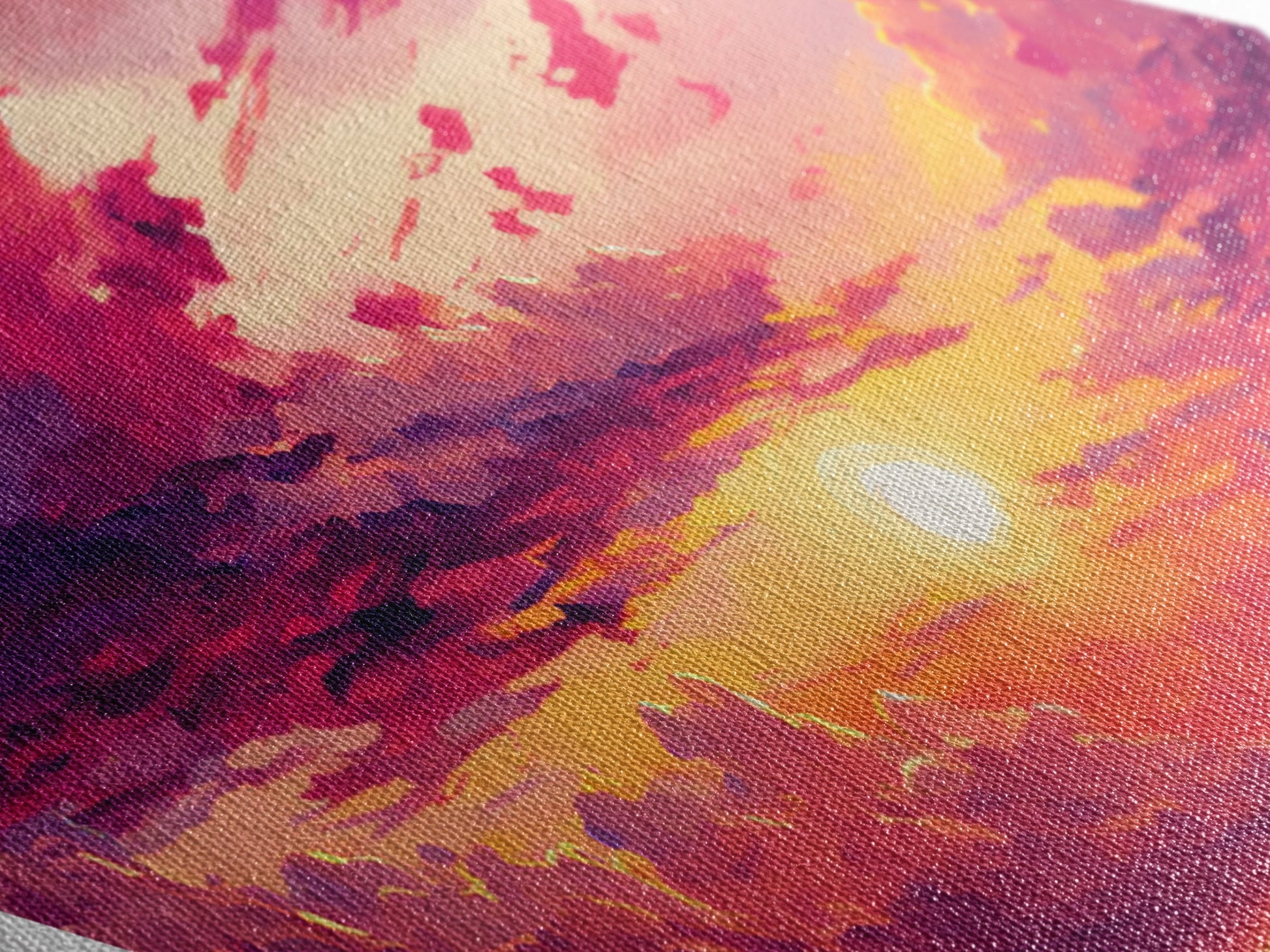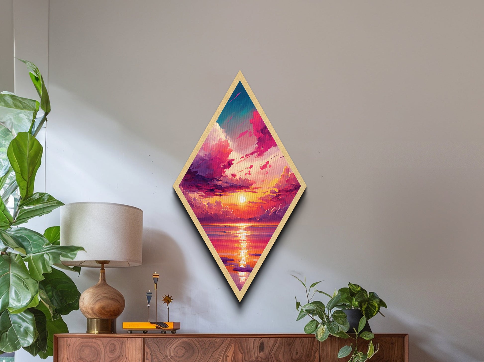 Sunset Dream Sky – Diamond Shaped Canvas Art Print with Colorful Cloudscape, Ocean Reflection Wall Decor, Tropical Sunrise Painting