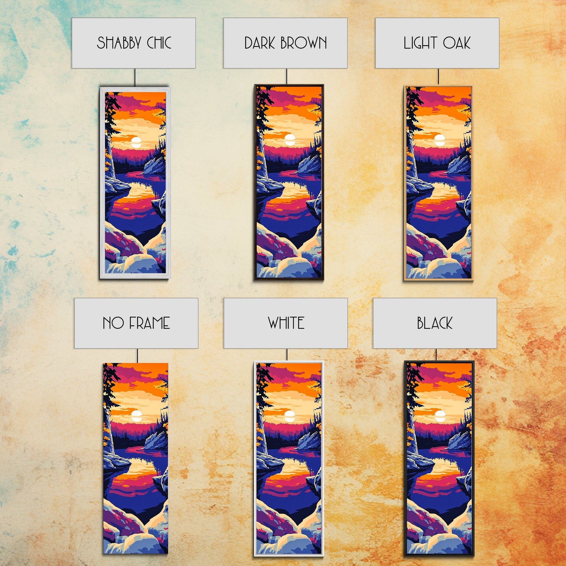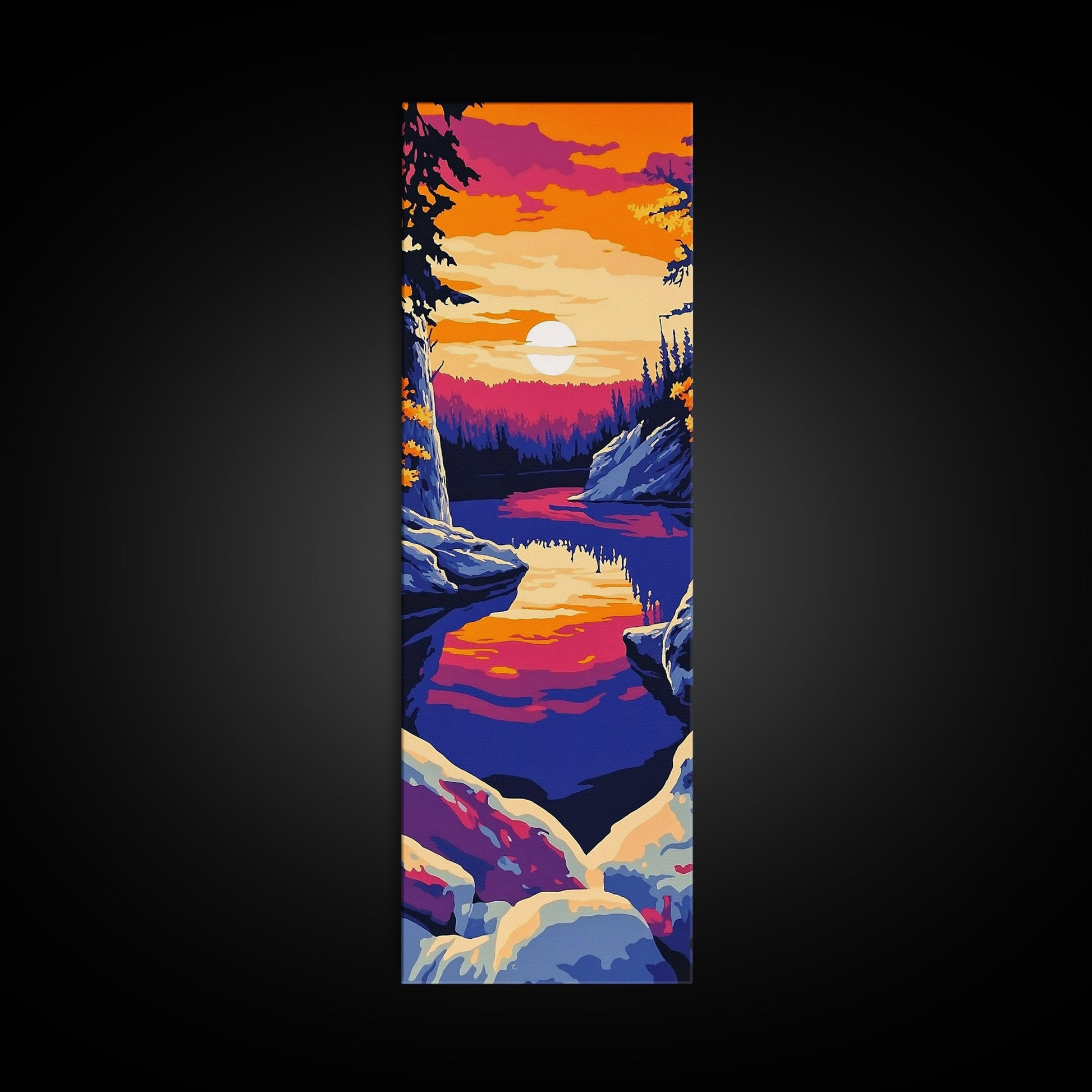 Sunset Lake, Colorful Landscape, Nature Wall Art, Framed Canvas Print, Boho Decor, Living Room Art, Rustic Home, Autumn Art