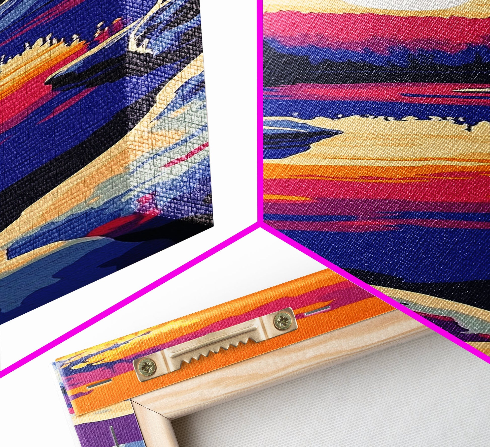 Hello and thank you for taking the time to view our modern high quality giclée artwork! We offer both posters and stretched canvas prints. Our posters are printed on Ultra Matte 60 lb / 230 GSM high quality photo paper, with a thickness of 10 mil. Our canvases are printed on museum grade 350 GSM canvas material with ECO friendly archival grade ink, then hand stretched and stapled over premium, FSC certified and shrink resistant frames. Designed and built to last a lifetime.
