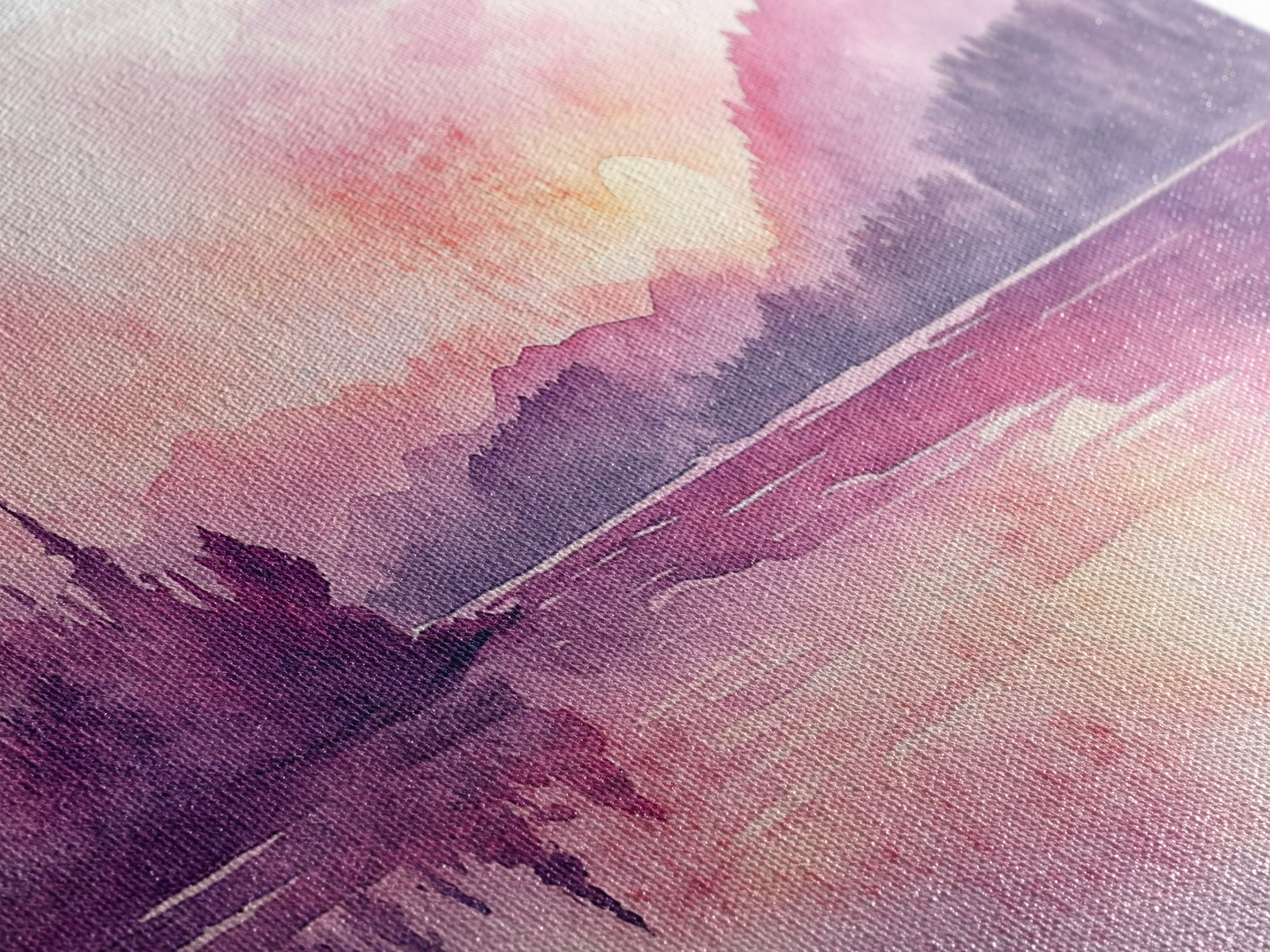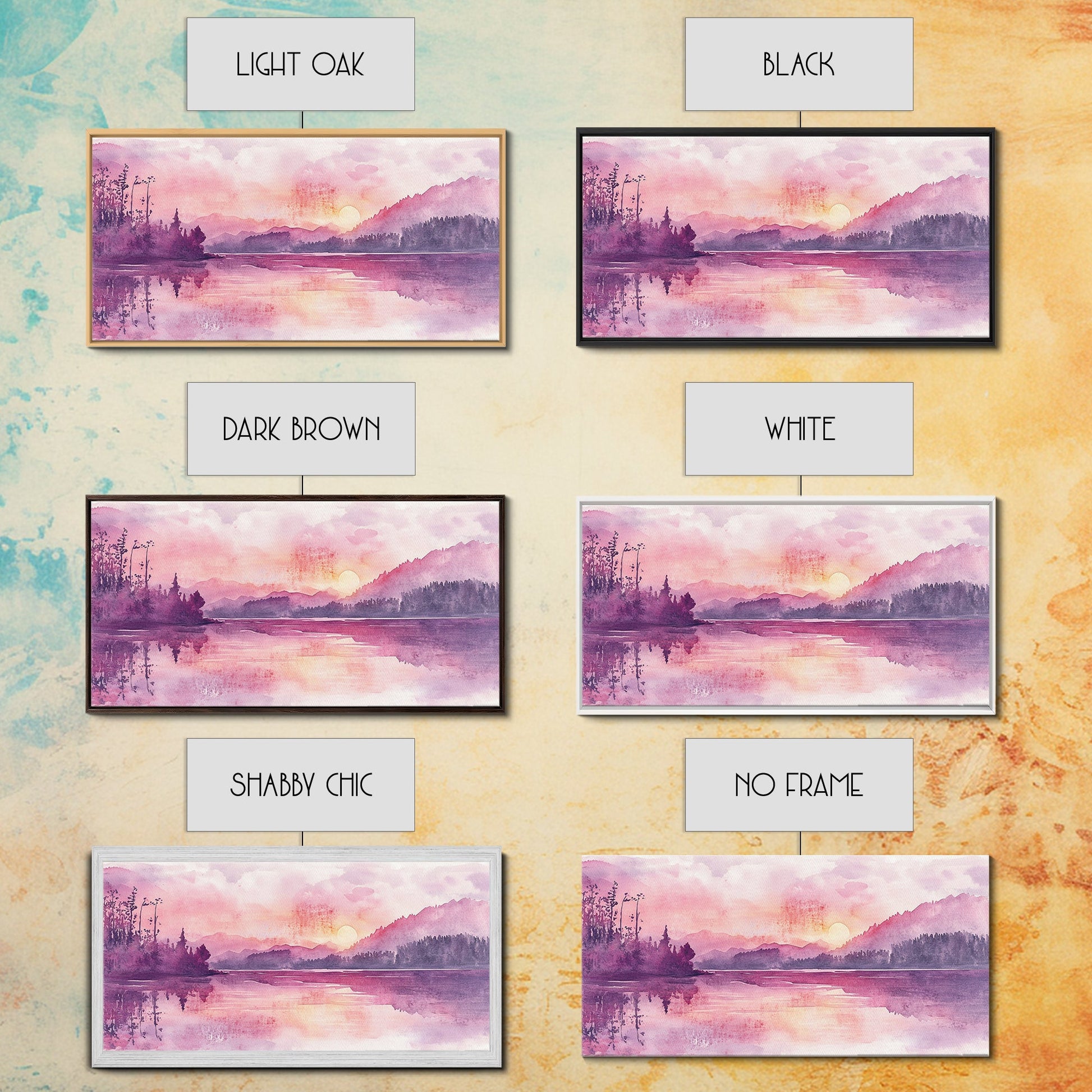 Sunset Landscape Art Framed Canvas Print Pink Orange Wall Art Living Room Art Panoramic Painting Above Couch Art Coastal Decor