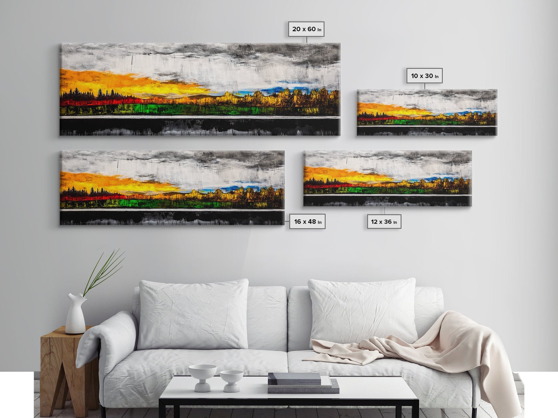 Sunset Landscape, Autumn Trees, Nature Art, Framed Canvas Print, Mountain Scene, Moody Sky, Living Room Wall Art, Dramatic Fall Decor