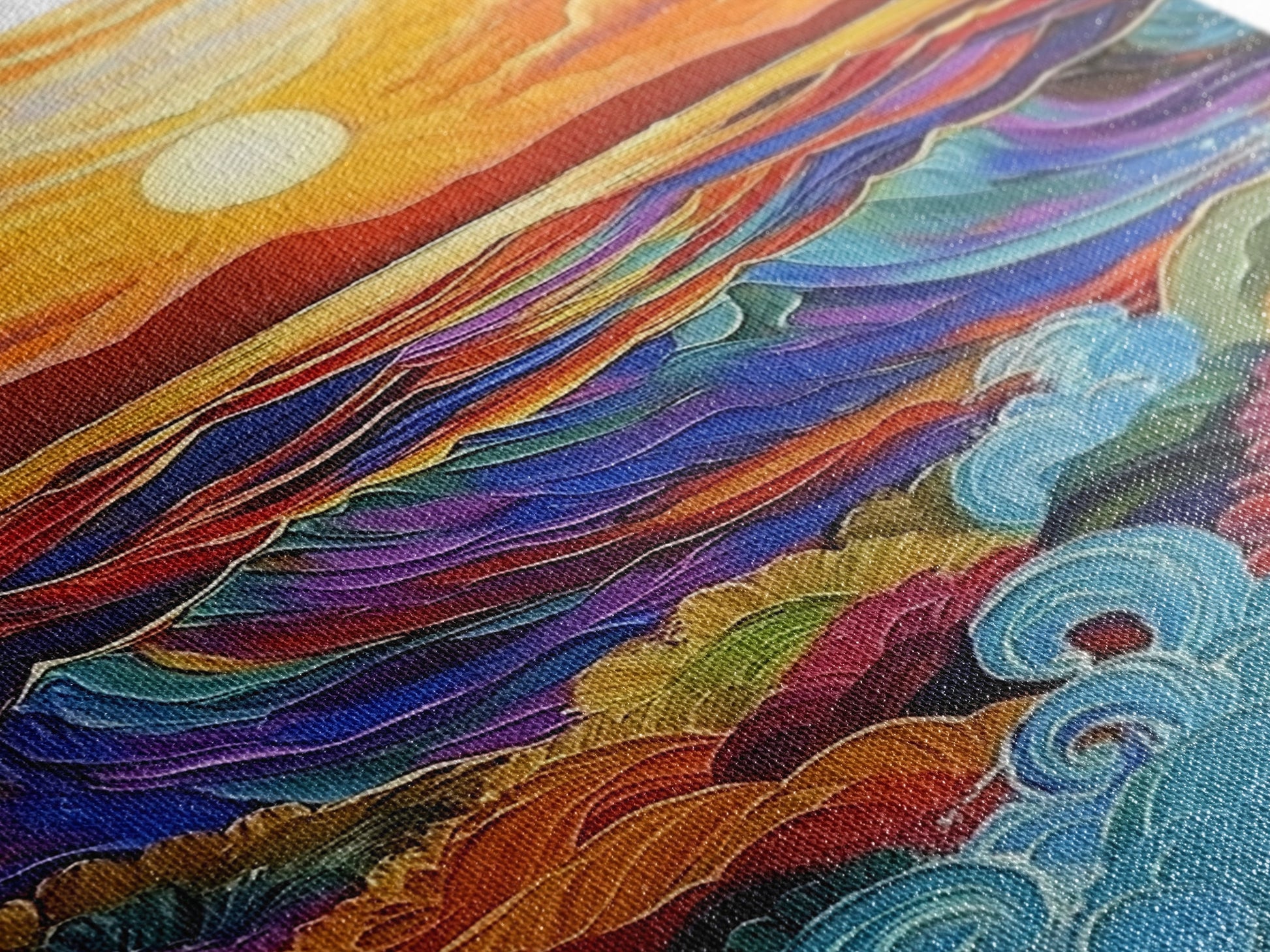 Most of our canvases are made in the USA, with the exception of canvases ordered with the light oak unstained frames, and any large canvases (24x48, 30x60, 16x48 and 20x60) ordered WITH a frame. These are temporarily made in and shipped from Europe, while we try to find a more consistent supplier in the USA.