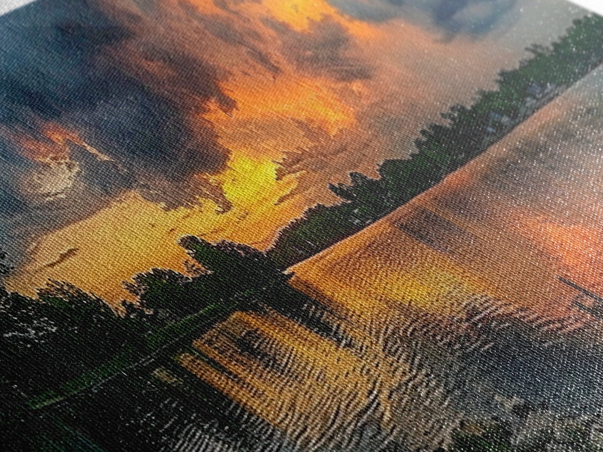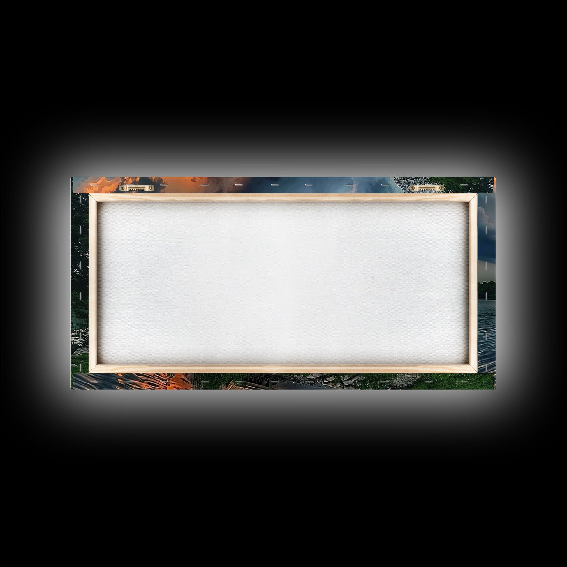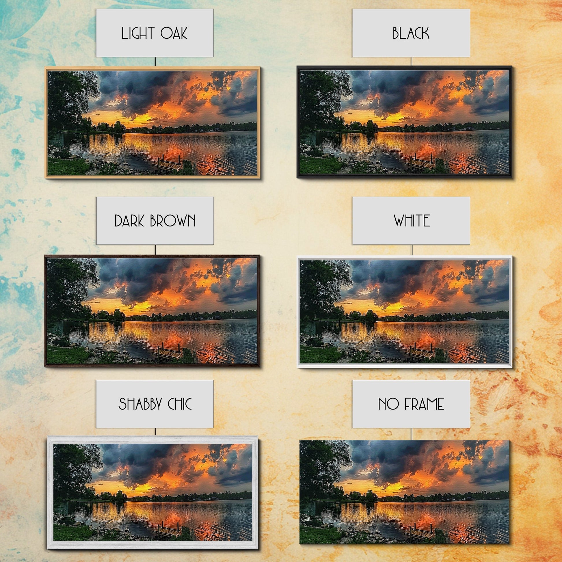 Sunset On The Lake Framed Canvas Print, Lakehouse Decor, Rustic Modern Farmhouse Wall Art, Photography Style Landscape Art