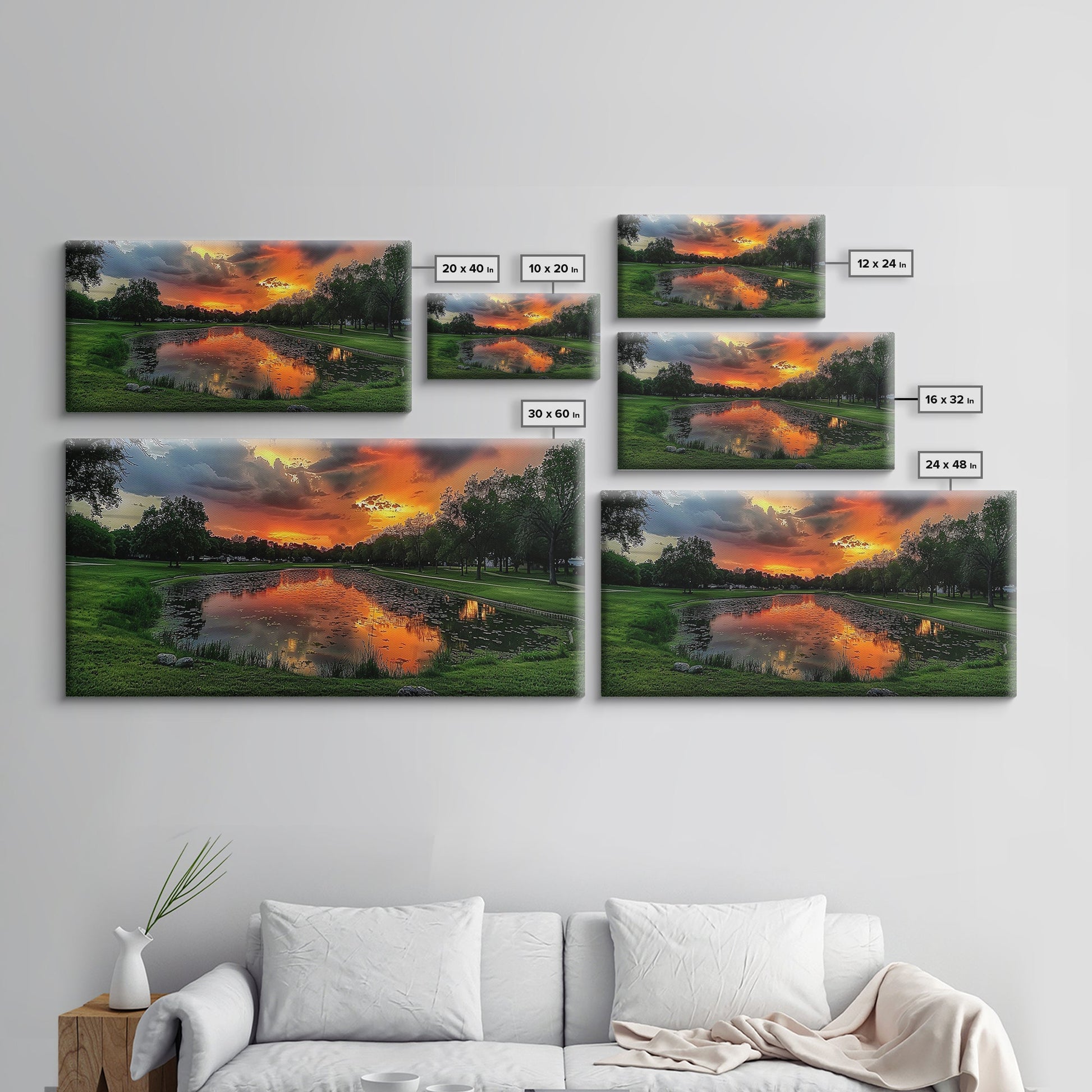 Sunset Over The Golf Course, Framed Canvas Print, Photography Style Wall Art, Beautiful Home Decor, Rustic Farmhouse Decor