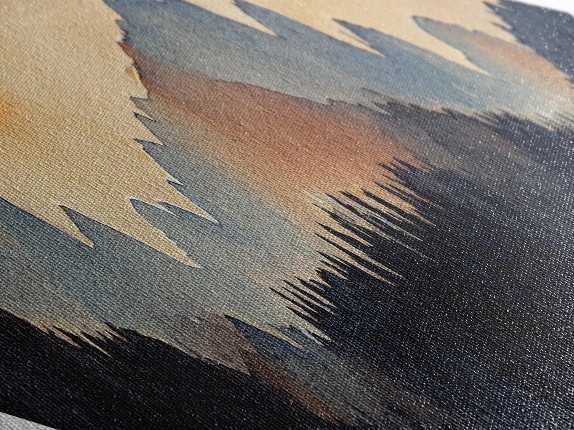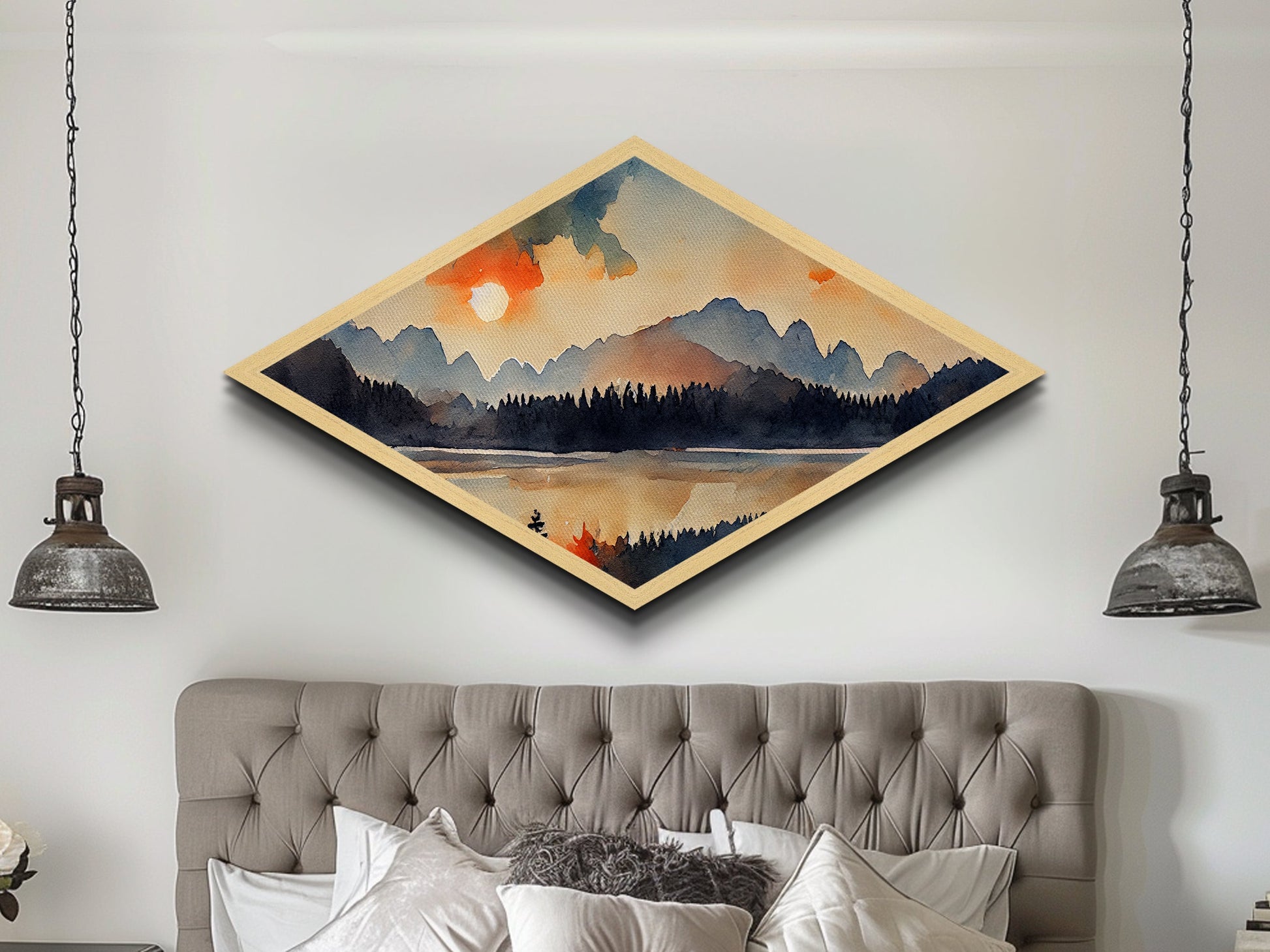 Sunset Over The Smoky Mountains, Diamond Shaped Art Print, Watercolor Landscape Painting, Nature Decor, Canvas Texture Art Print