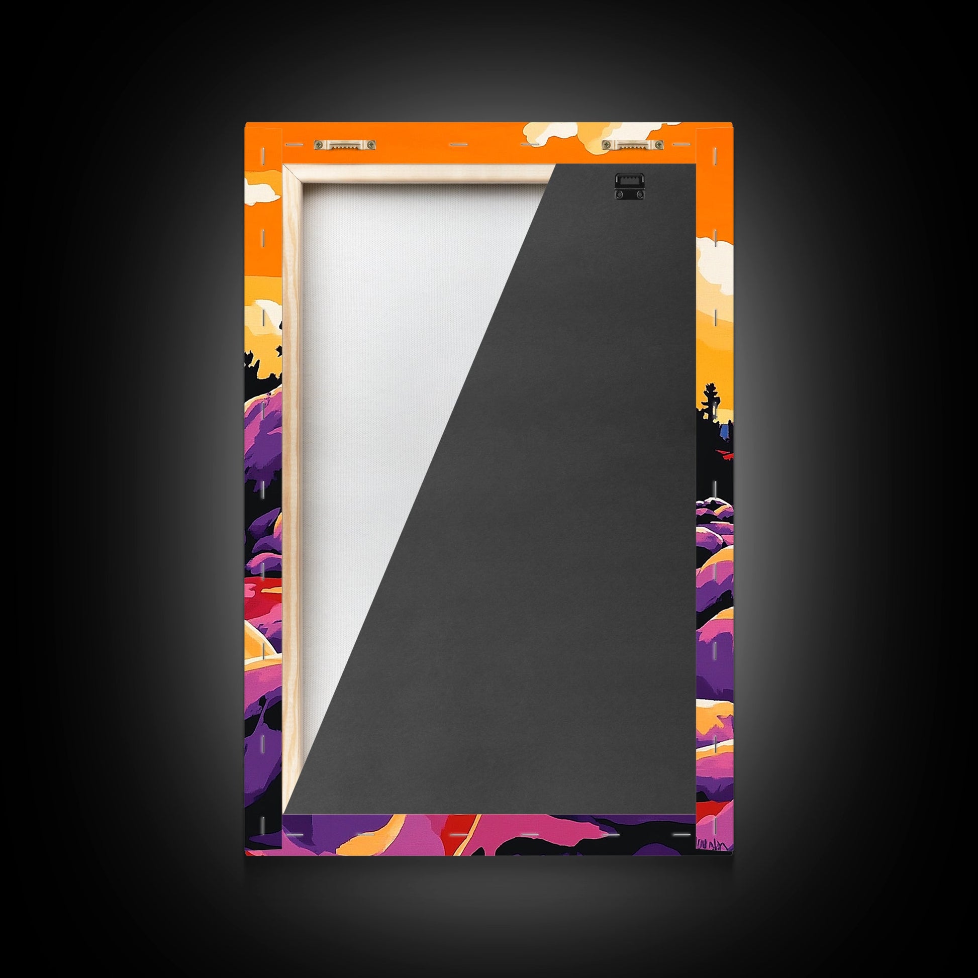 Sunset River, Nature Wall Art, Vibrant Landscape, Autumn Decor, Framed Canvas Print, Living Room Art, Bold Colors, Modern Art