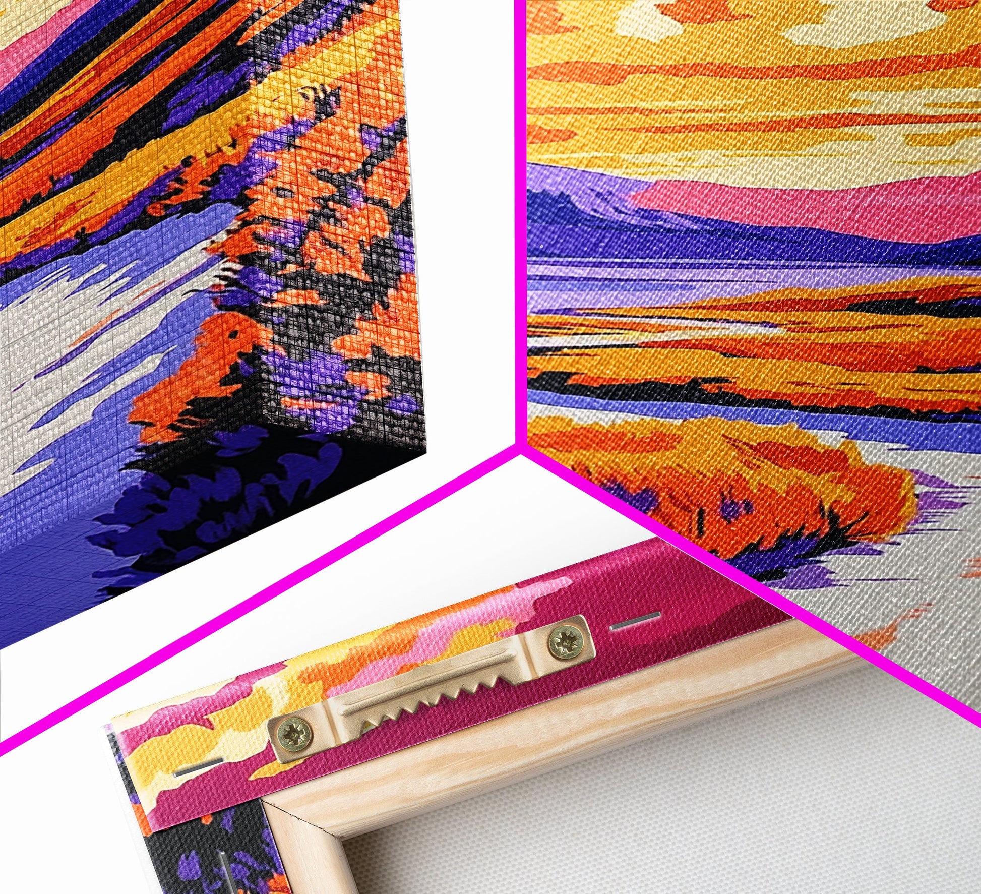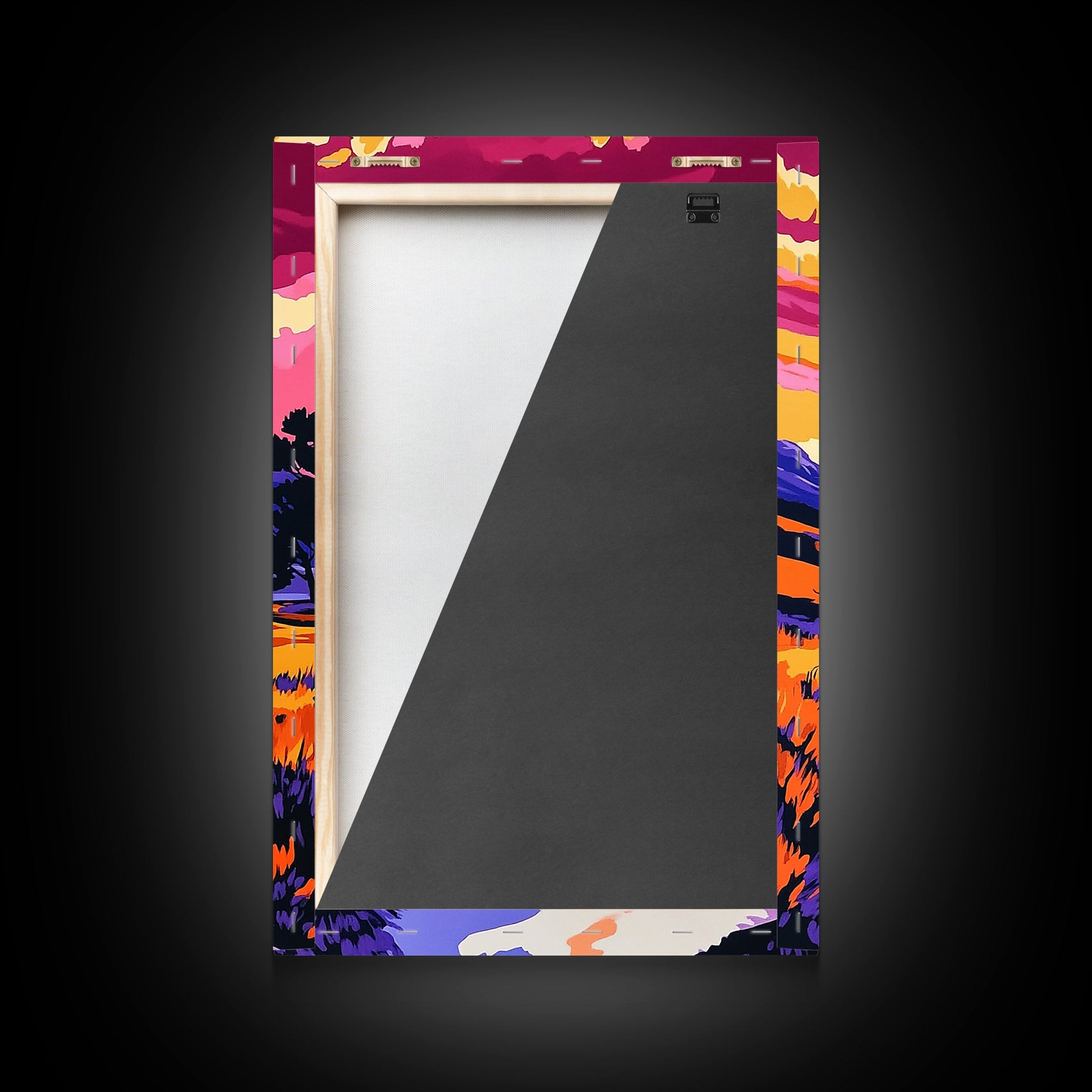 Sunset River, Vibrant Reflections, Colorful Landscape, Nature Art, Framed Canvas Print, Living Room Wall Art, Rustic Decor, Autumn Scene