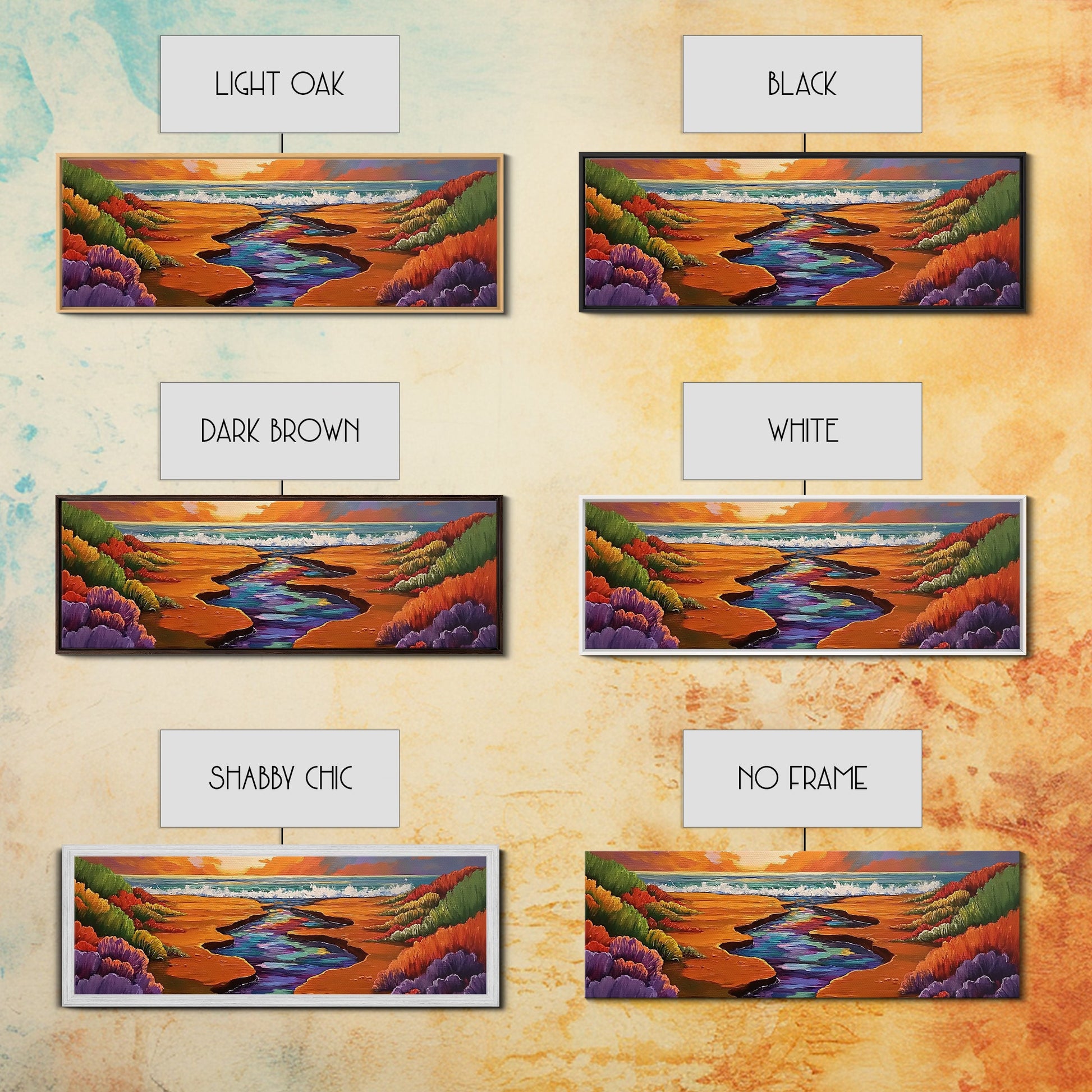 Sunset Stream, Coastal Canyon, Colorful Shoreline, Boho Nature Scene, Framed Canvas Print, Hallway Wall Art, Autumn Inspired Landscape