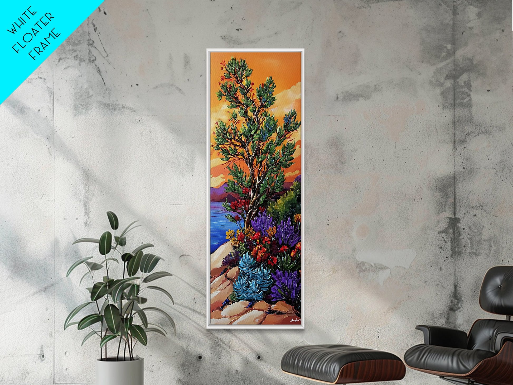 Sunset Tree, Wildflowers Desert, Canvas Print, Autumn sunset art, southwestern nature decor, boho fall home accent, canyon wall painting