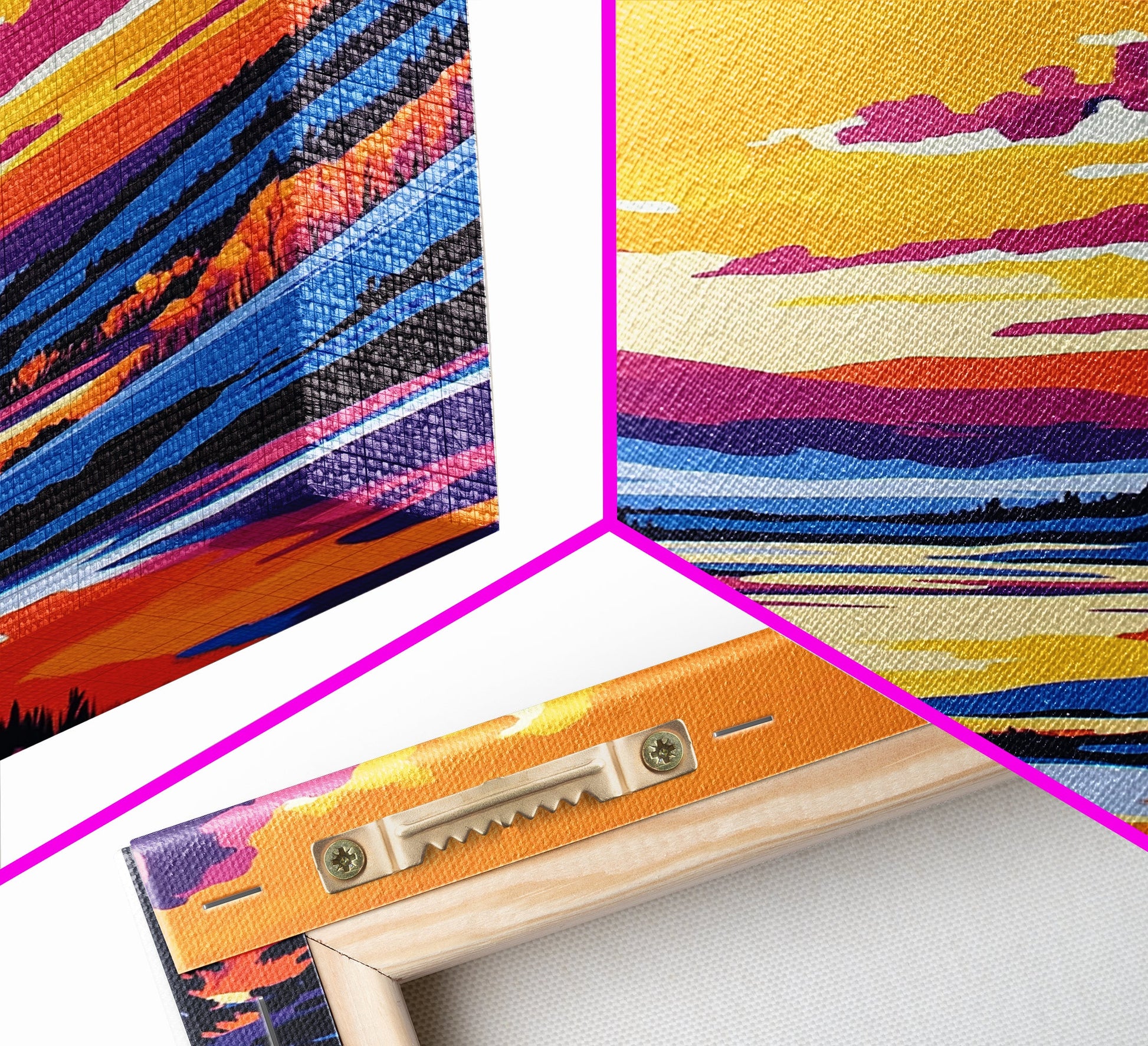 Hello and thank you for taking the time to view our modern high quality giclée artwork! We offer both posters and stretched canvas prints. Our posters are printed on Ultra Matte 60 lb / 230 GSM high quality photo paper, with a thickness of 10 mil. Our canvases are printed on museum grade 350 GSM canvas material with ECO friendly archival grade ink, then hand stretched and stapled over premium, FSC certified and shrink resistant frames. Designed and built to last a lifetime.