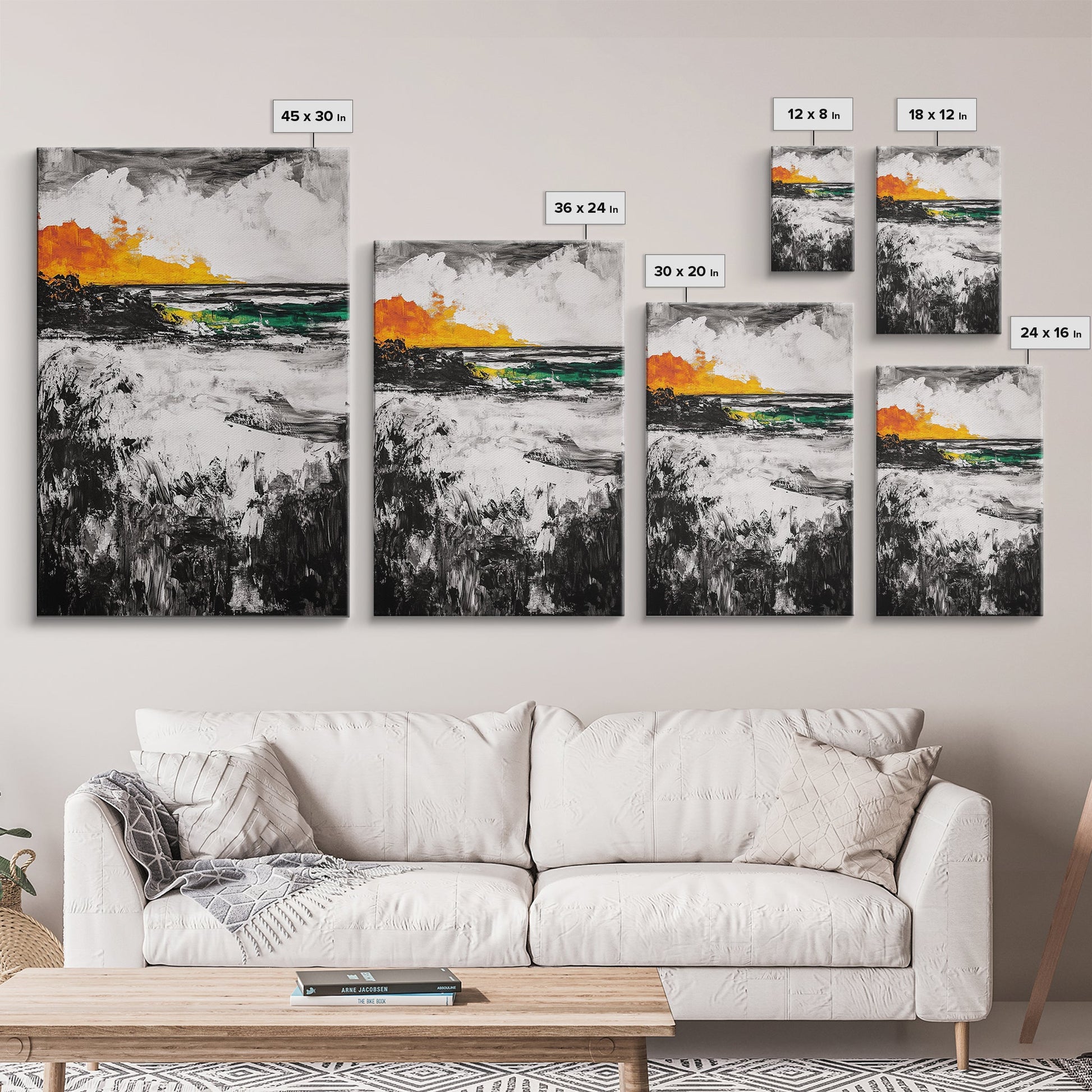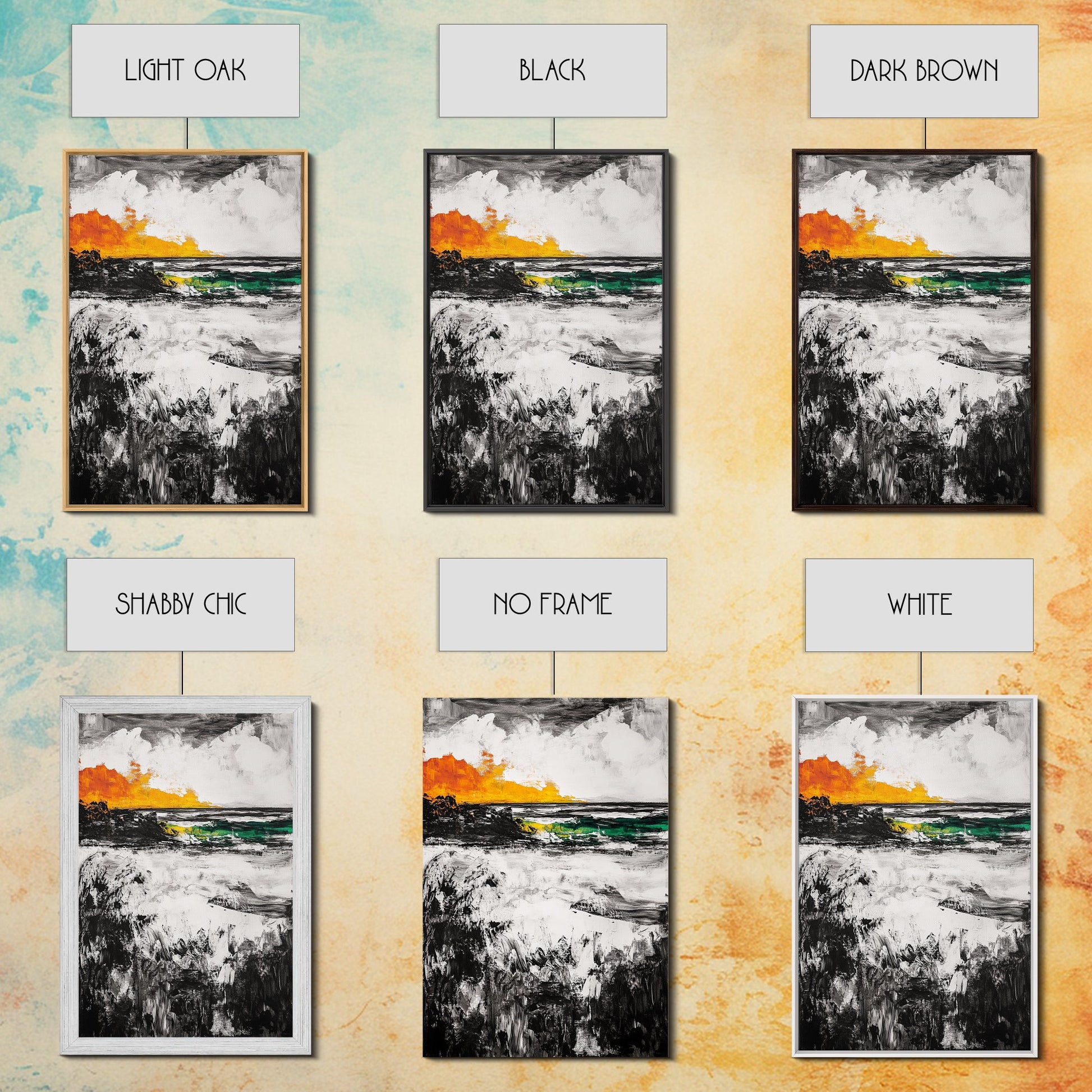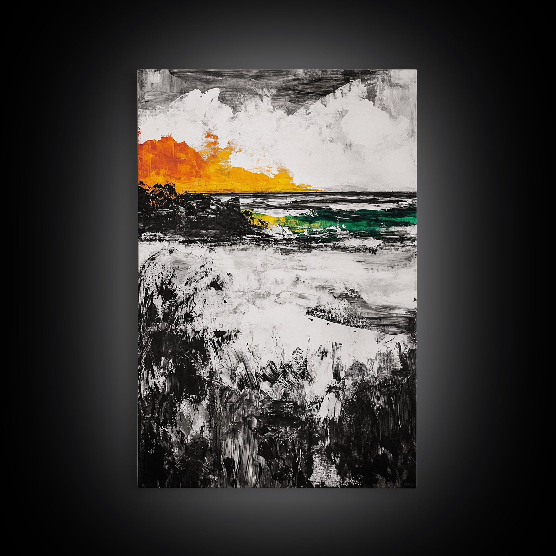 Sunset Waves, Coastal Painting, Ocean Sunset, Abstract Landscape, Framed Canvas Print, Nautical Art, Living Room Wall Art, Bold Color Art