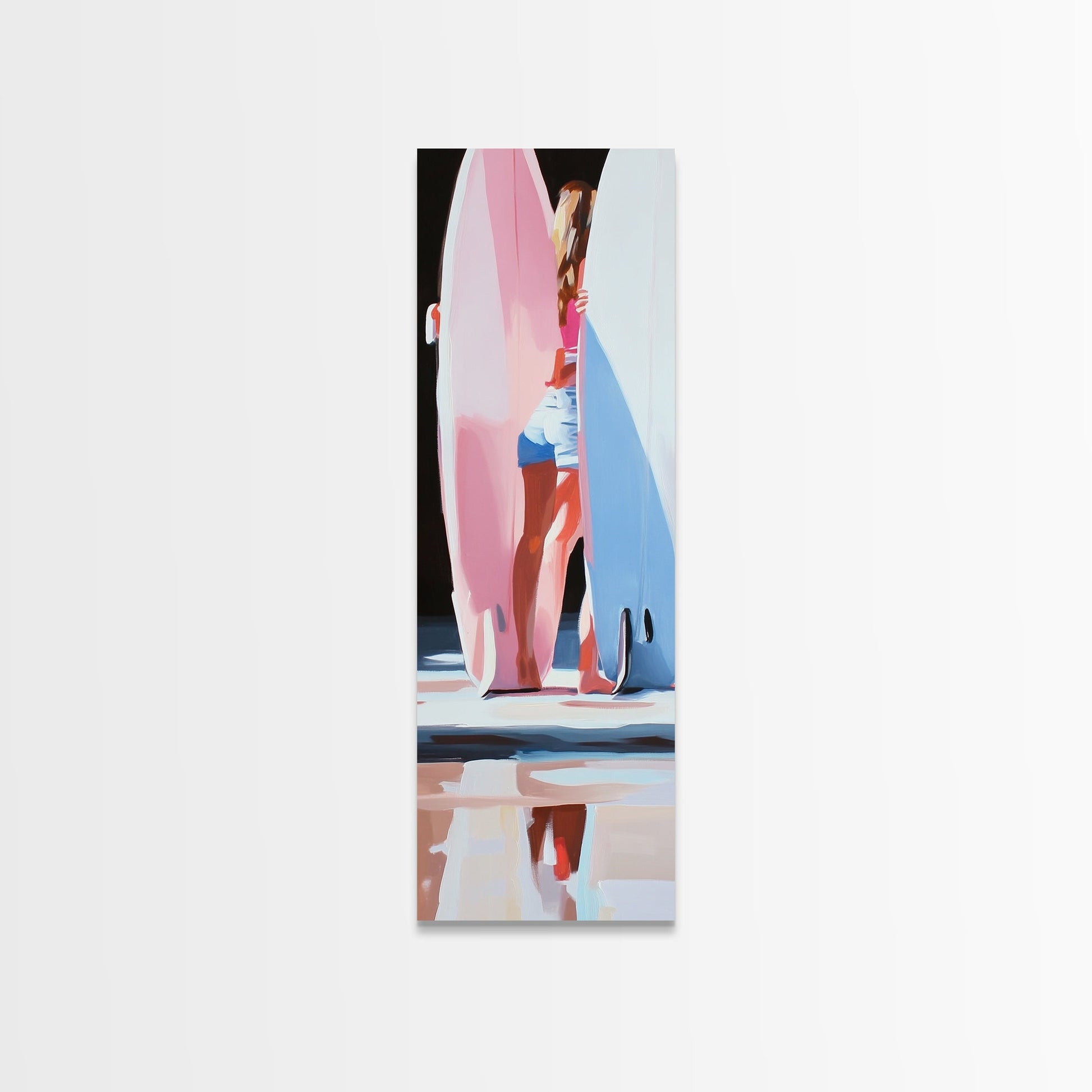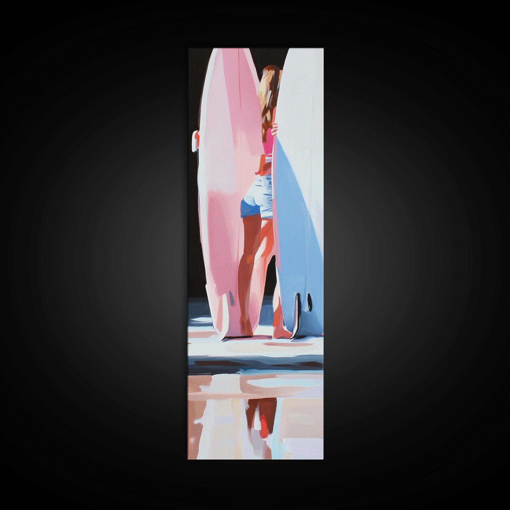 Surf Girl, Beach Aesthetic, Retro Coastal, Sun Kissed Art, Vibrant Summer Decor, Modern Framed Canvas Print, Ocean Lover Gift, Boho Style