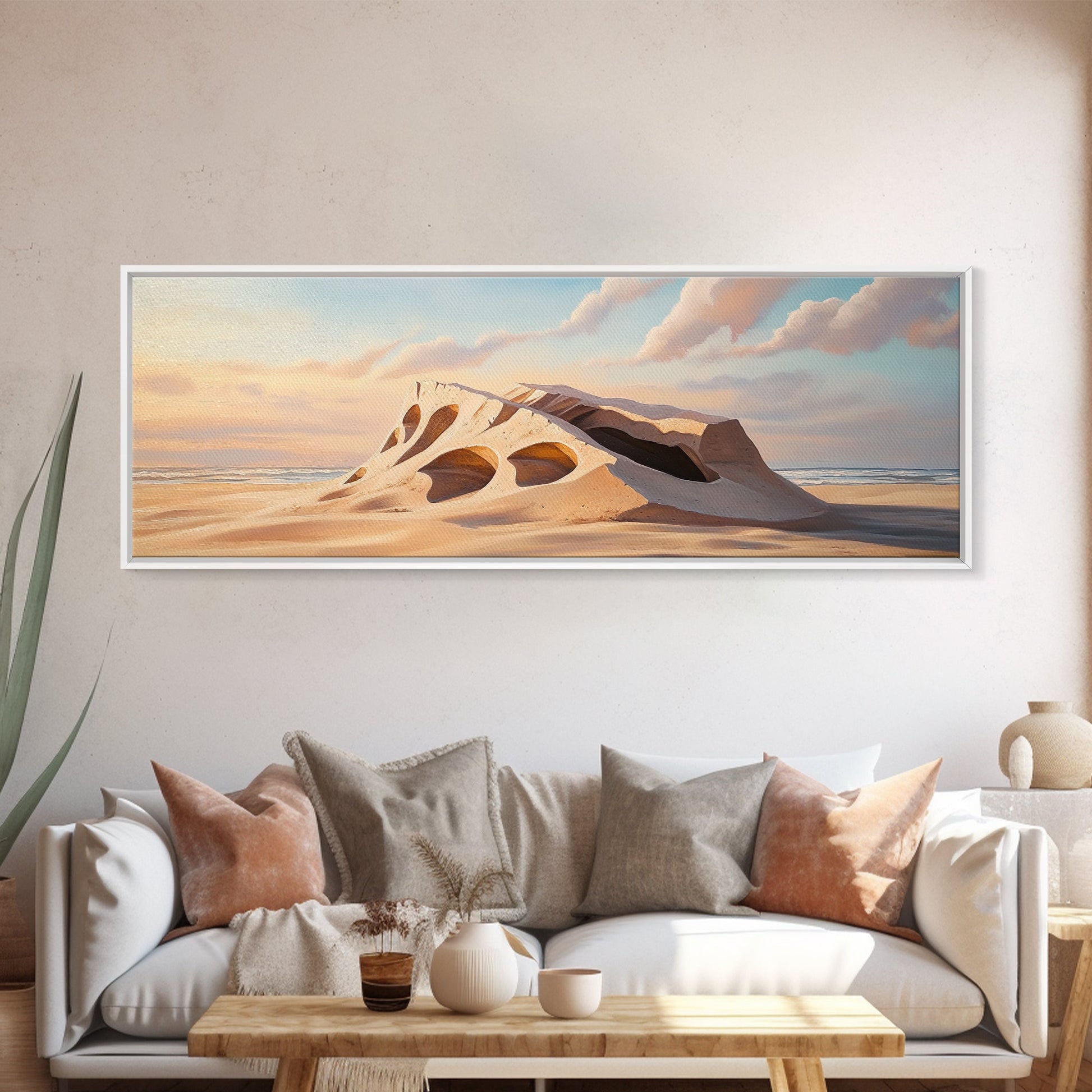 Surreal Beach Sand Formation Canvas Print, Coastal Nature Wall Art, Modern Ocean Landscape Painting, Minimalist Seascape Bedroom Decor