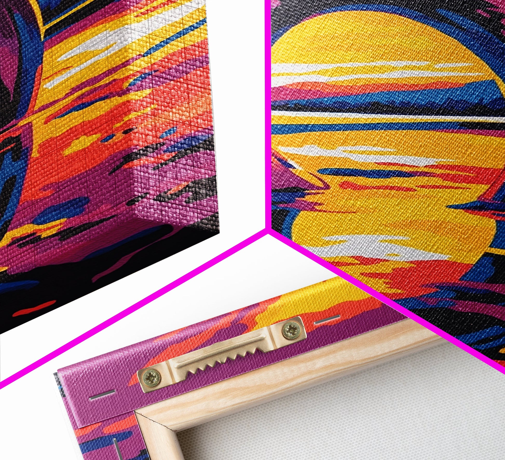 Hello and thank you for taking the time to view our modern high quality giclée artwork! We offer both posters and stretched canvas prints. Our posters are printed on Ultra Matte 60 lb / 230 GSM high quality photo paper, with a thickness of 10 mil. Our canvases are printed on museum grade 350 GSM canvas material with ECO friendly archival grade ink, then hand stretched and stapled over premium, FSC certified and shrink resistant frames. Designed and built to last a lifetime.