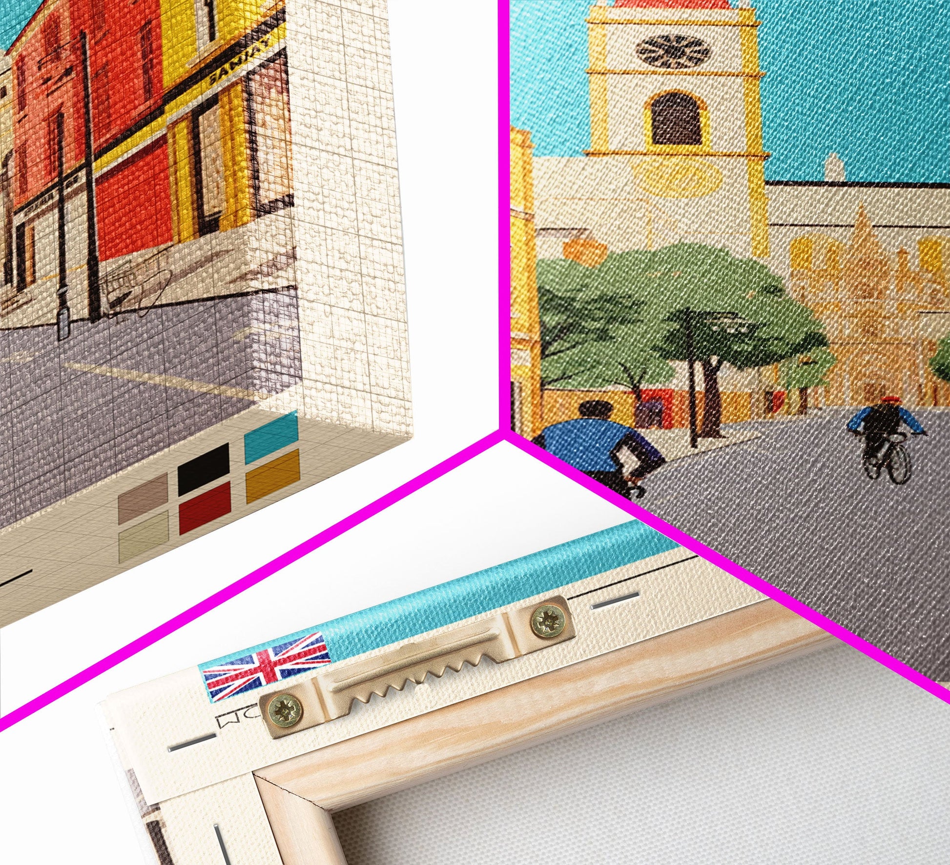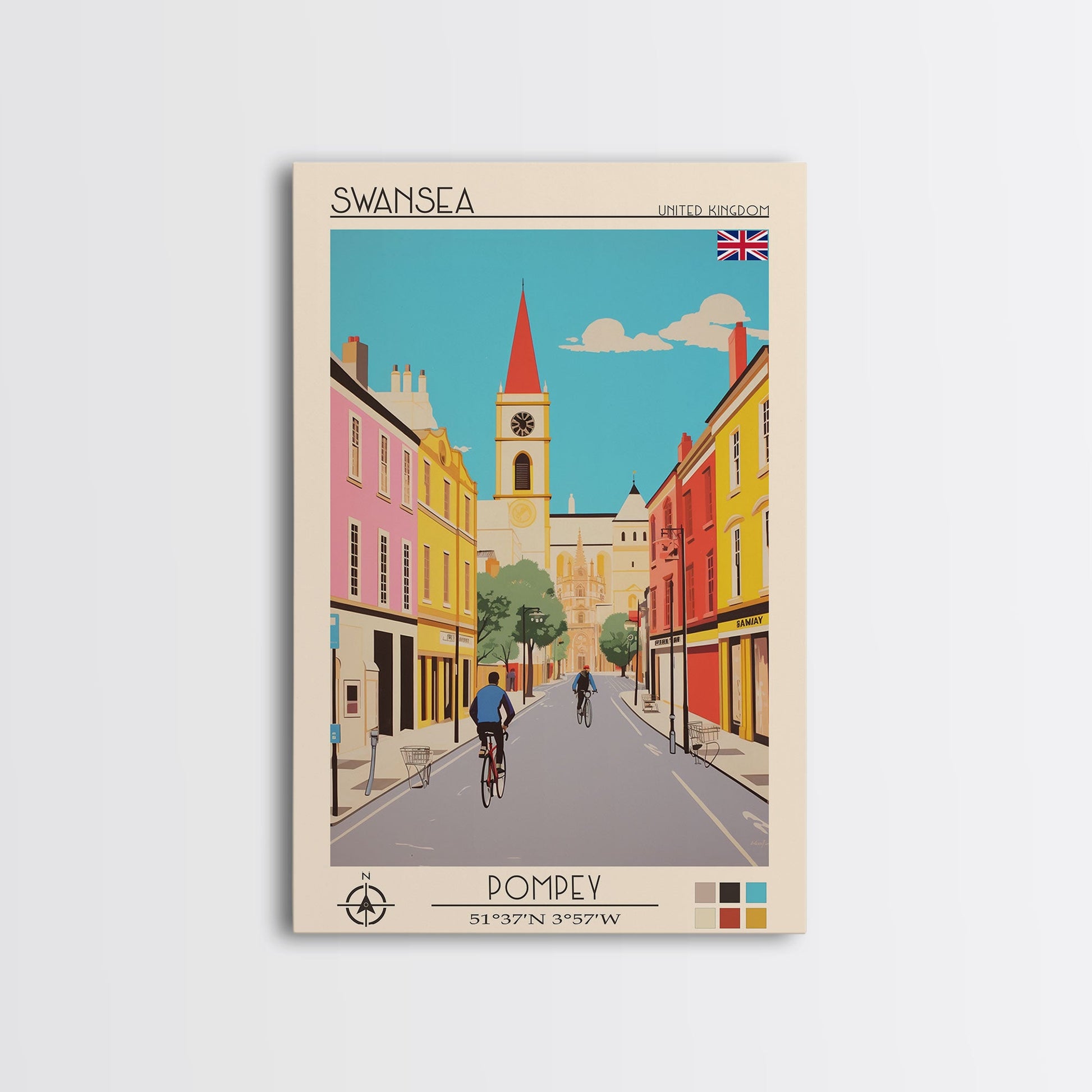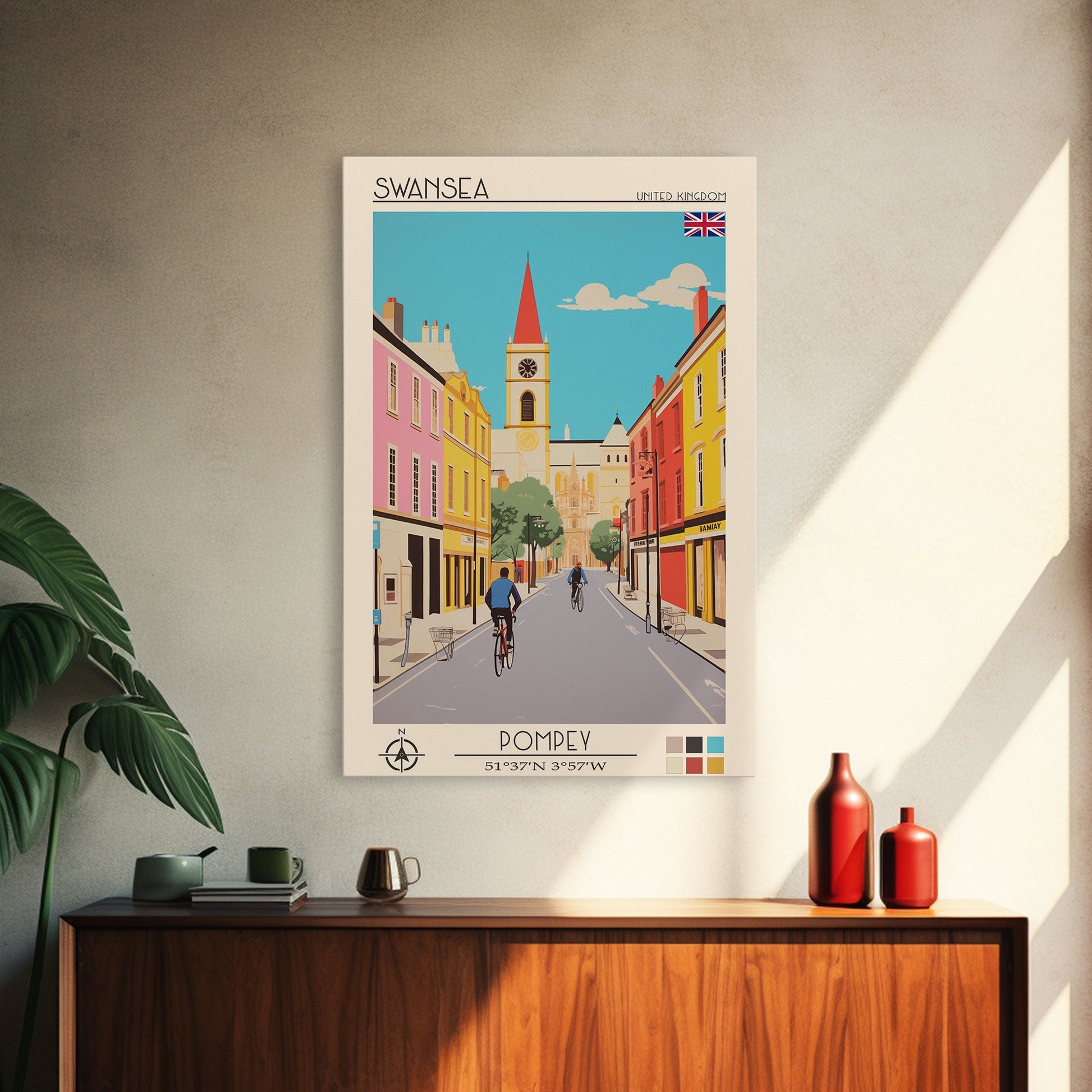 Swansea United Kingdom Travel Poster Framed Canvas Print, Midcentury Modern Art, Pop Art Wall Decor, Living Room Art, Home Decoration