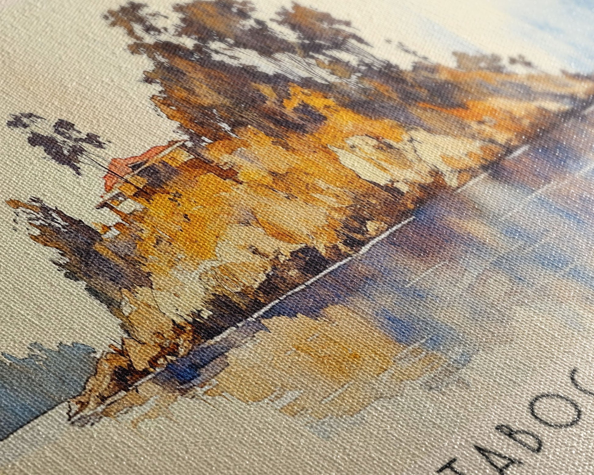 Most of our canvases are made in the USA, with the exception of canvases ordered with the light oak unstained frames, and any large canvases (24x48, 30x60, 16x48 and 20x60) ordered WITH a frame. These are temporarily made in and shipped from Europe, while we try to find a more consistent supplier in the USA.