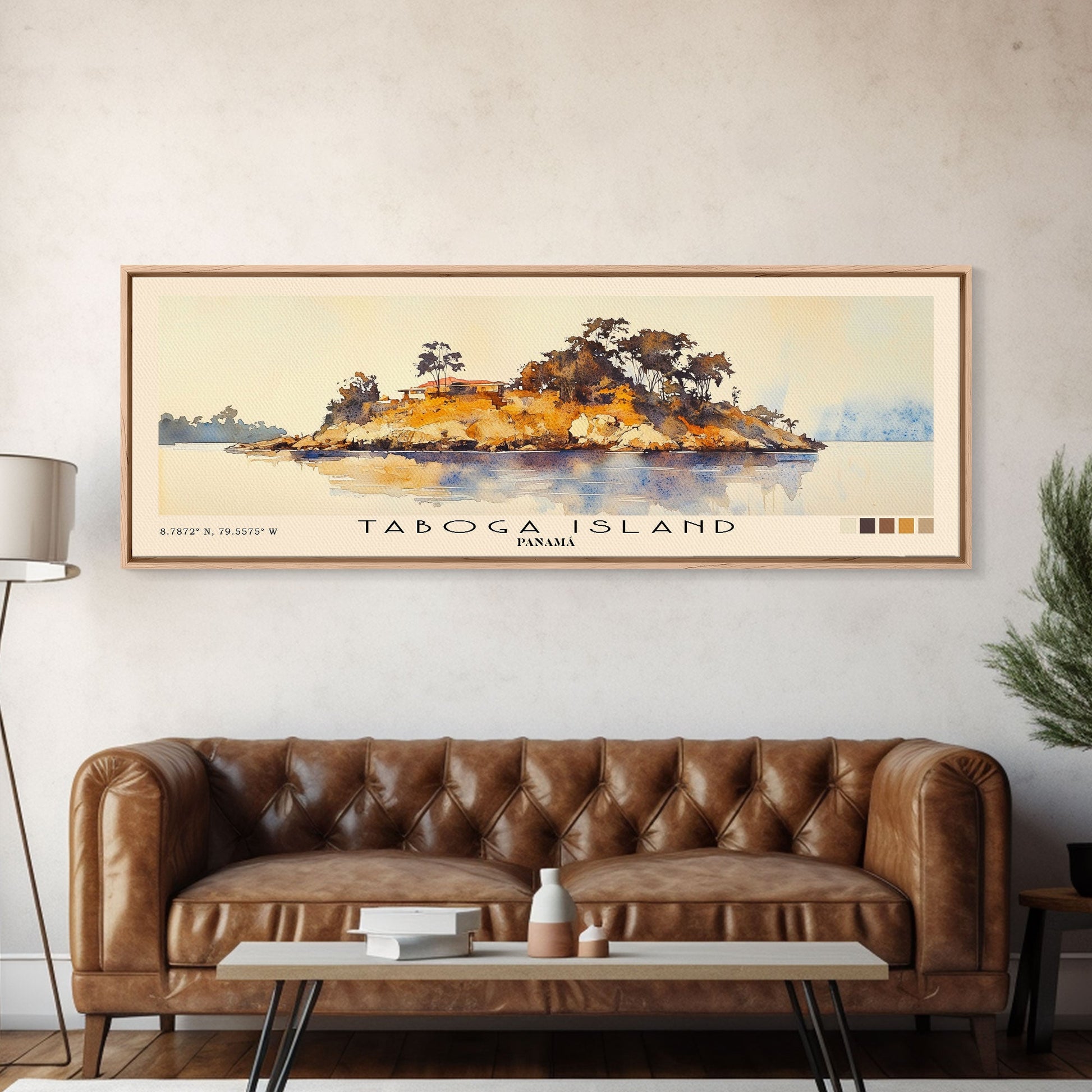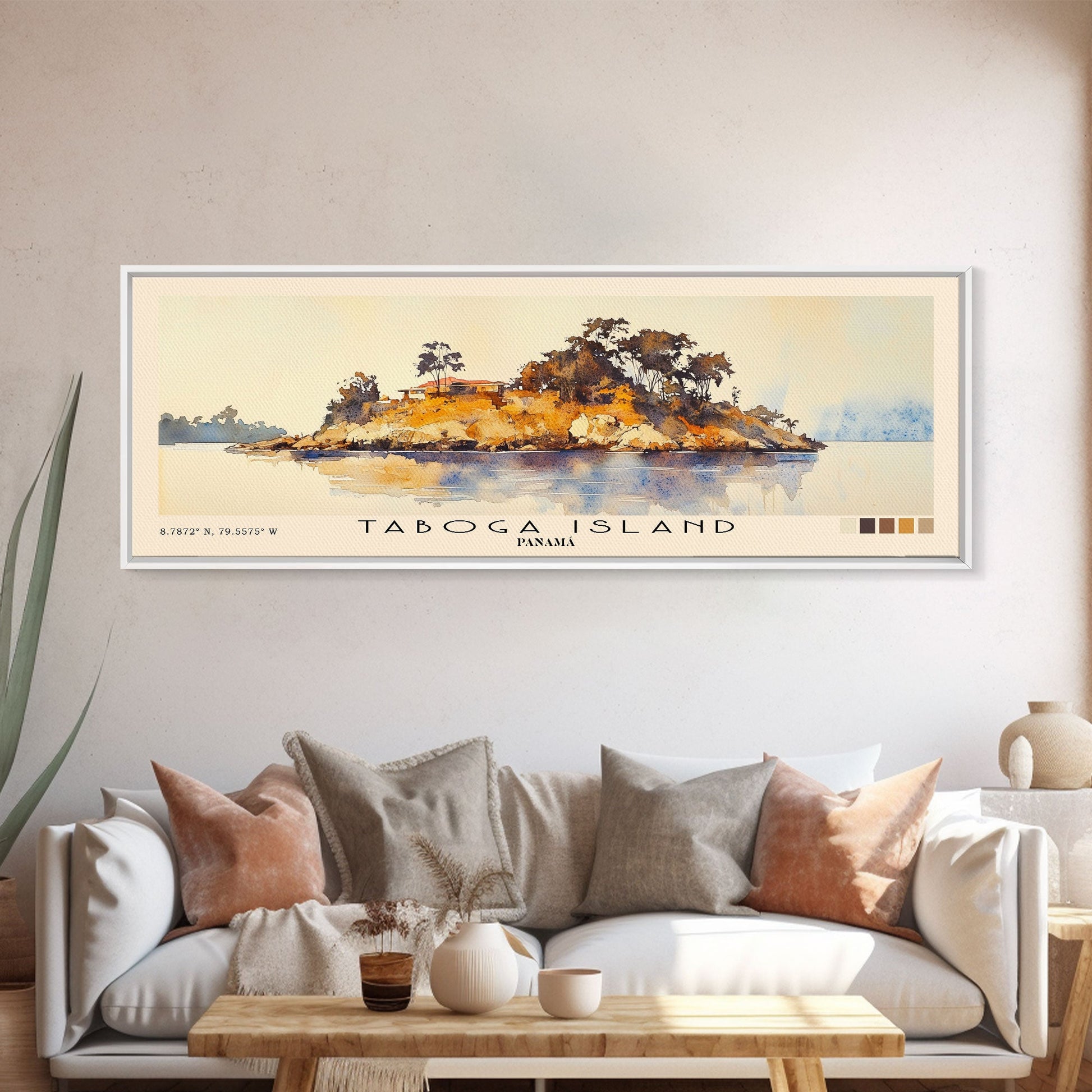 Taboga Island, Panamá Watercolor Beach Print, Vacation Gift, Panamá Wall Art, Framed Canvas Print, Framed Beach Painting