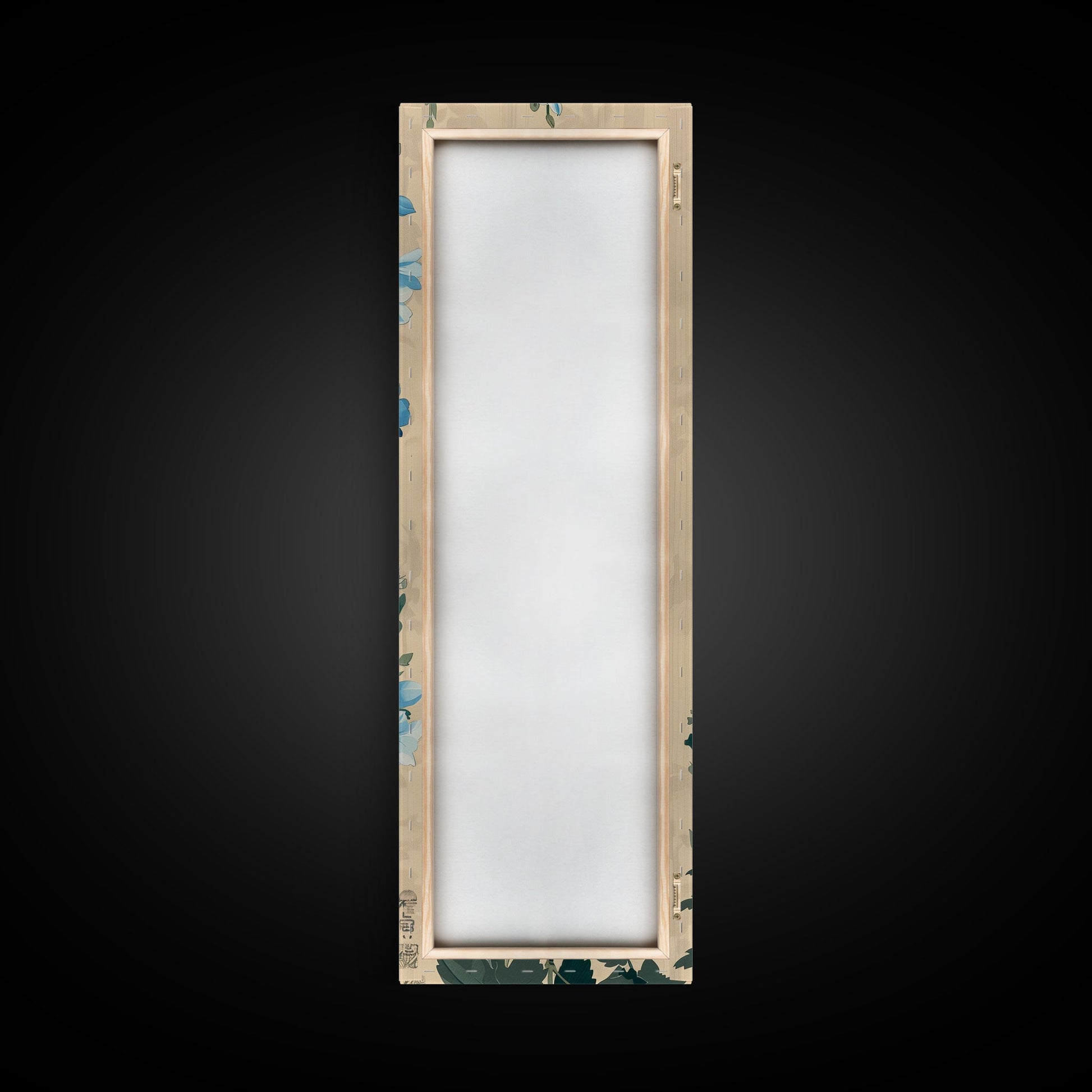 Tall Blue Delphinium Flowers Against Beige Background Ukiyo-e Wood Block Print Framed Canvas Print