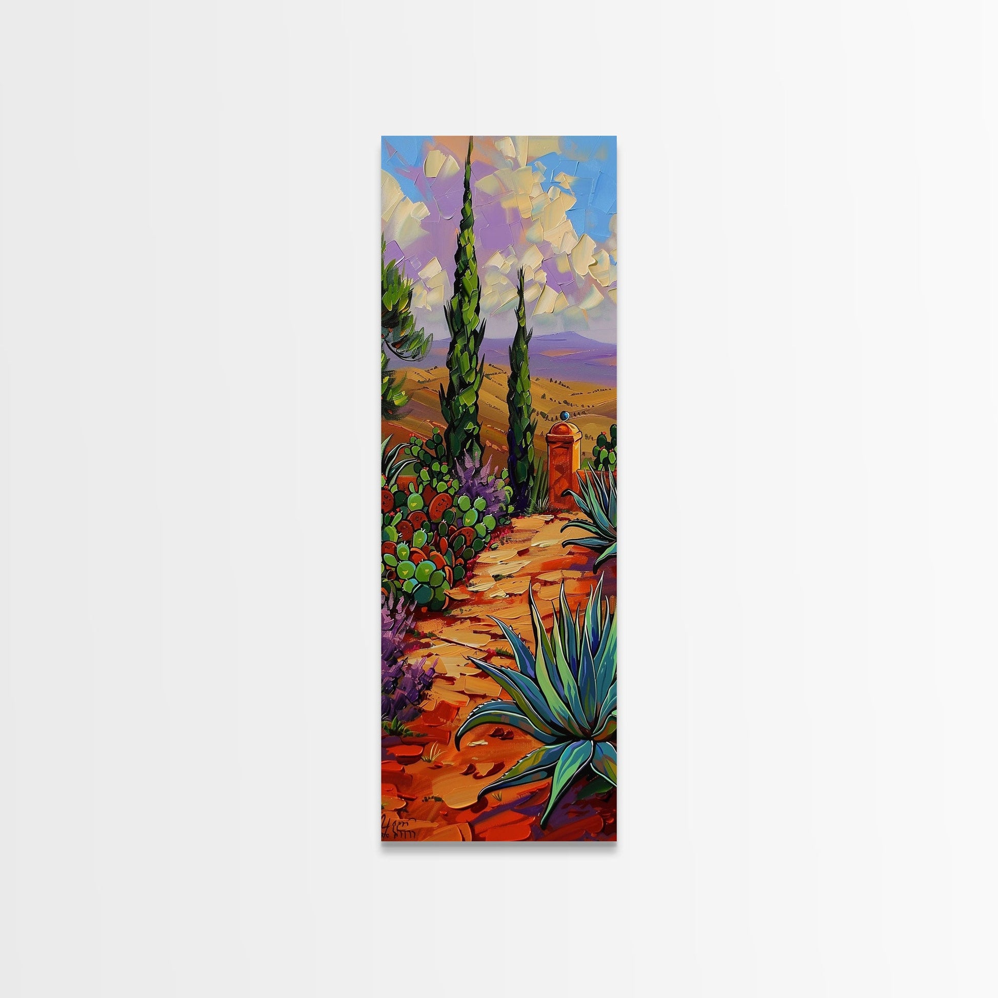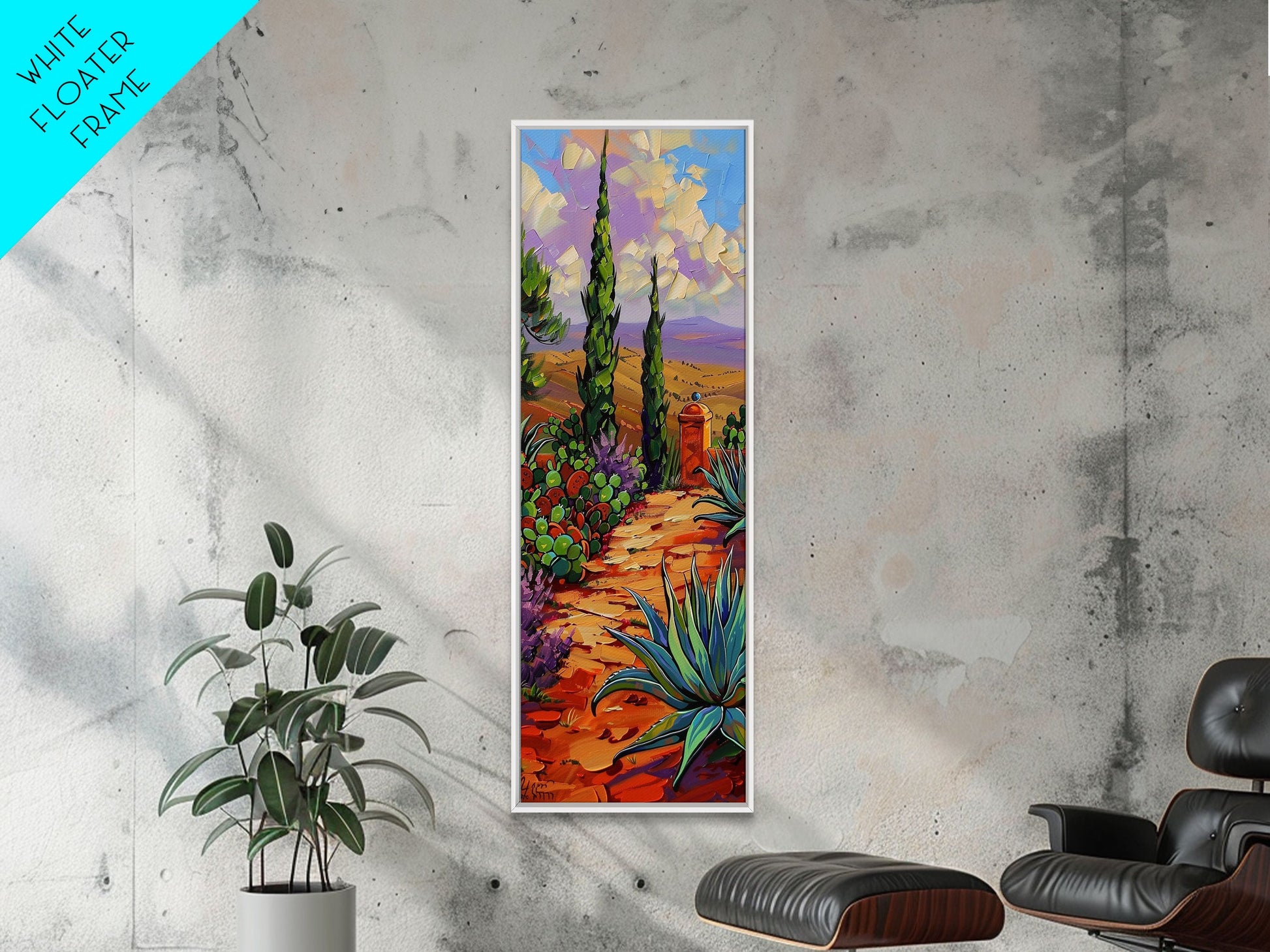 Tall Narrow Canvas Oil Painting of Tuscan Landscape Framed, Mountain Wall Art for Bedroom, Contemporary Art for Kitchen and Living Room