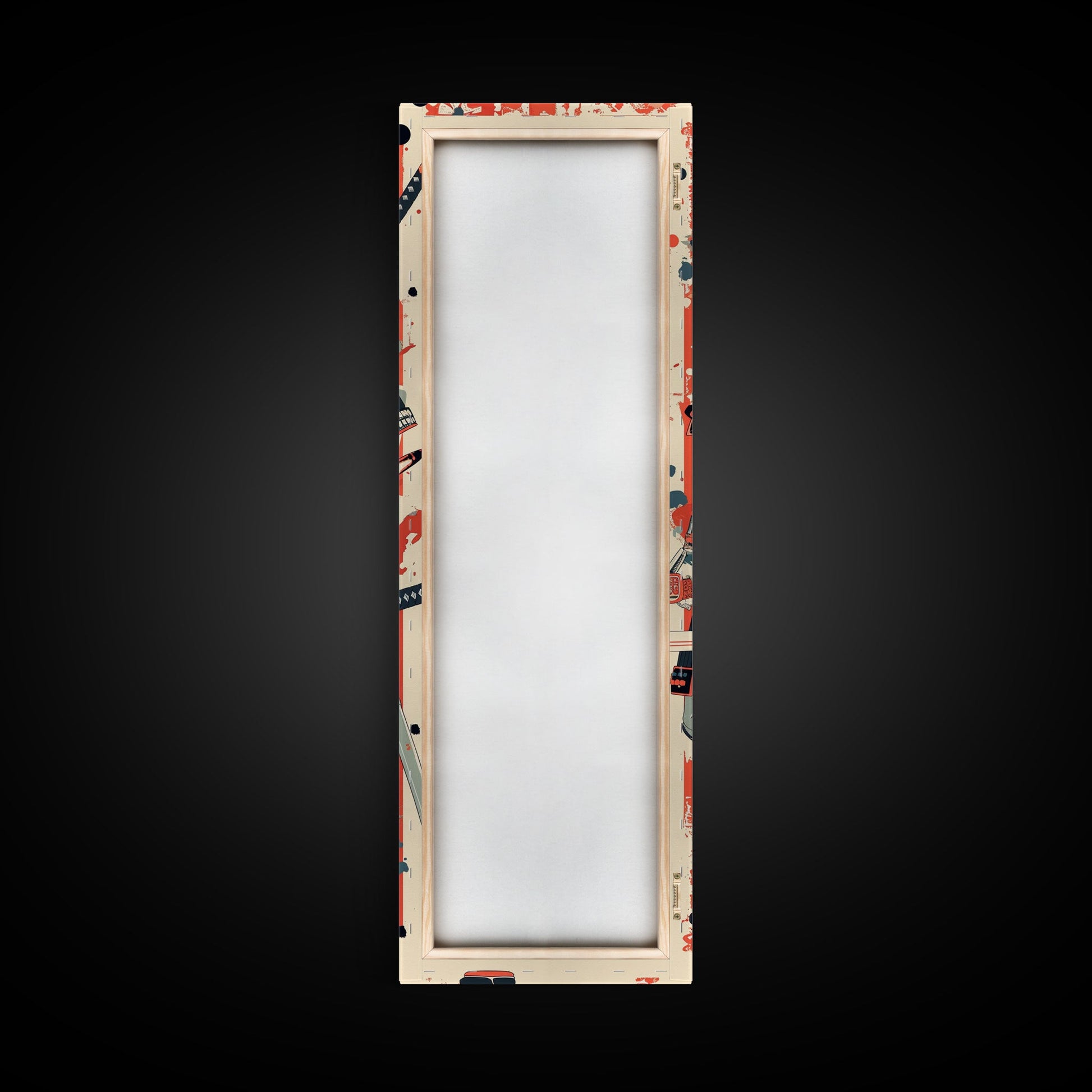 Tall Skinny Art Japanese Style Wood Block Print Samurai Warrior In Full Armor On A Red Background For Framed Canvas Print In Ukiyo-e Style