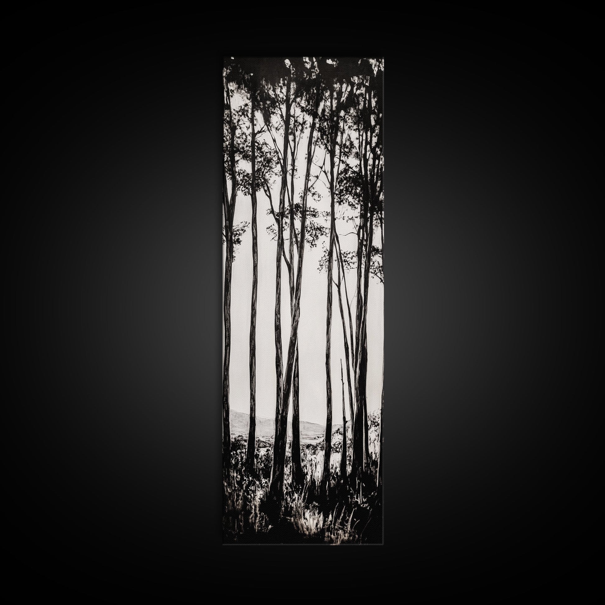 Tall Trees, Monochrome Forest, Tranquil Landscape, Framed Canvas Print, Nature Wall Art, Rustic Cabin Decor, Modern Minimalist Art