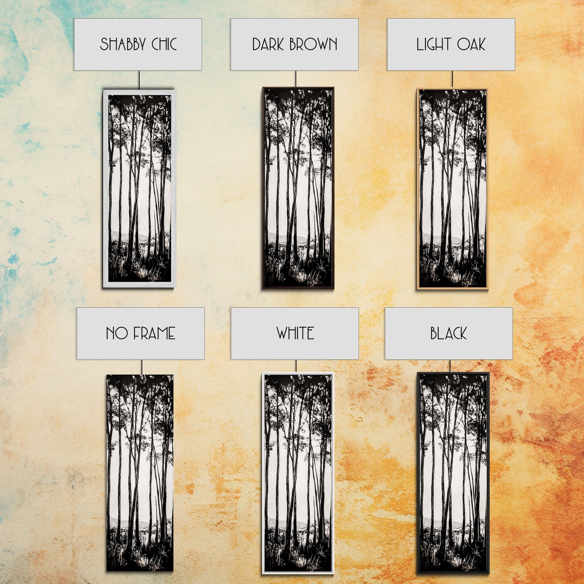 *Optional frames add a total of 1.5 inches to each dimension, for example a 10x20 canvas with a frame will be 11.5 by 21.5 inches total. All framed canvas are 1.5" total depth.
