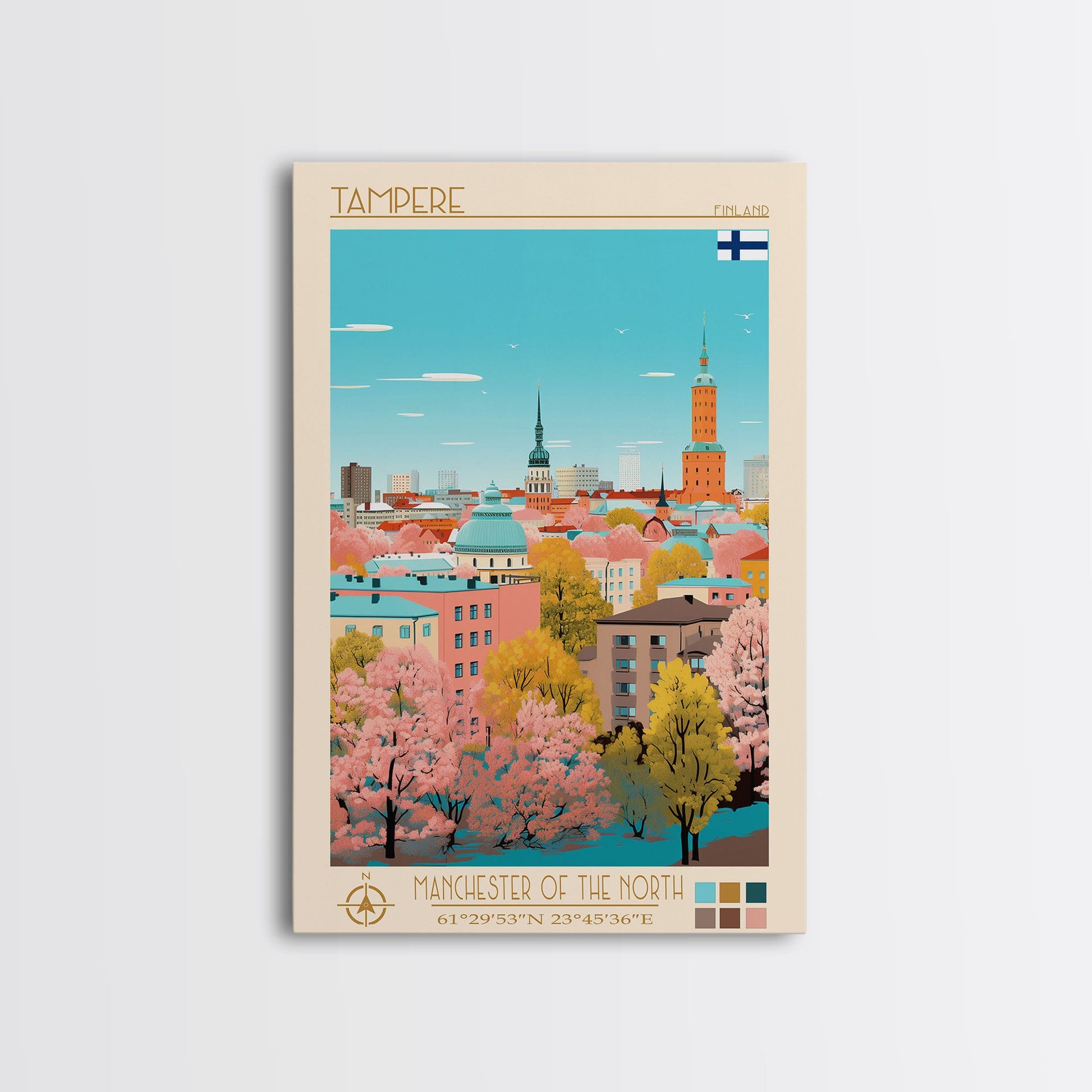 Tampere Finland Travel Poster Framed Canvas Print, Midcentury Modern Art, Pop Art Wall Decor, Living Room Art, Vacation Gift
