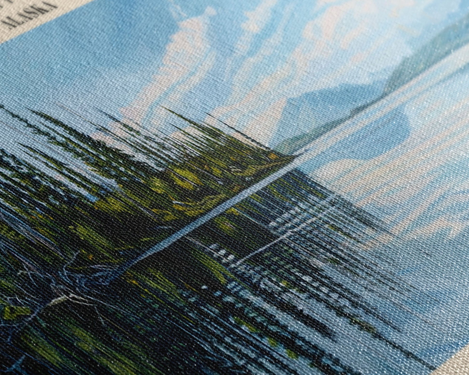 Most of our canvases are made in the USA, with the exception of canvases ordered with the light oak unstained frames, and any large canvases (24x48, 30x60, 16x48 and 20x60) ordered WITH a frame. These are temporarily made in and shipped from Europe, while we try to find a more consistent supplier in the USA.