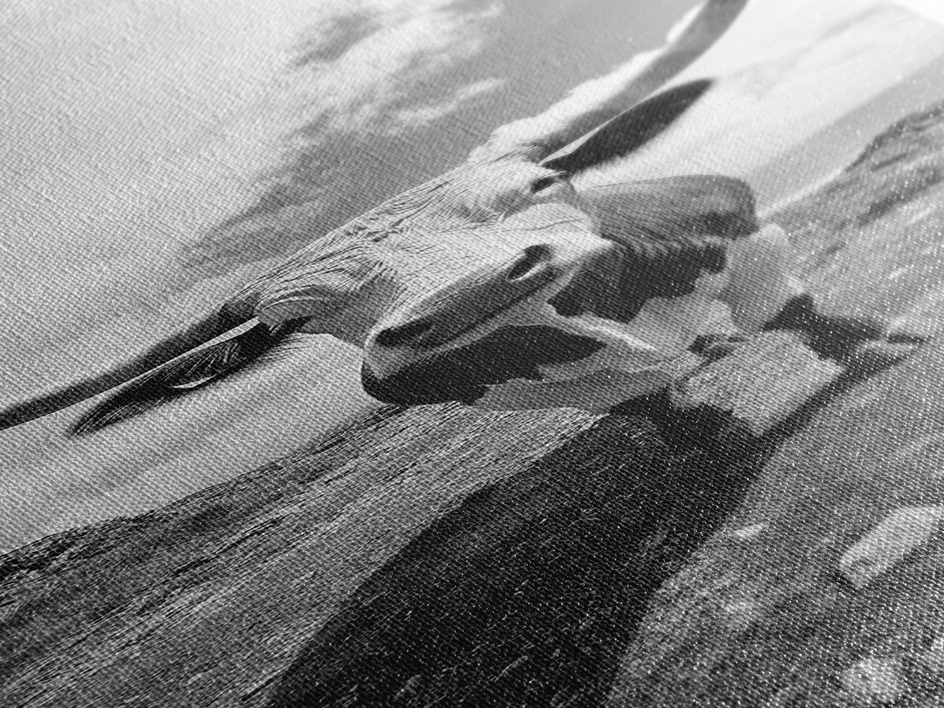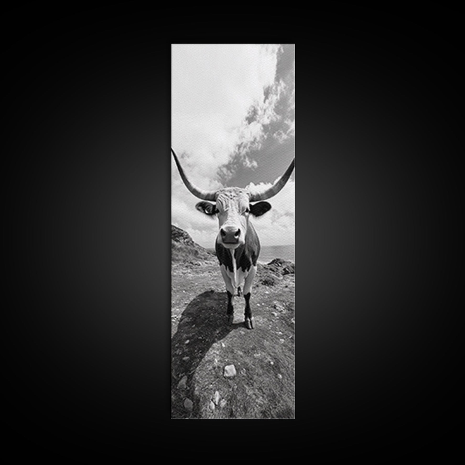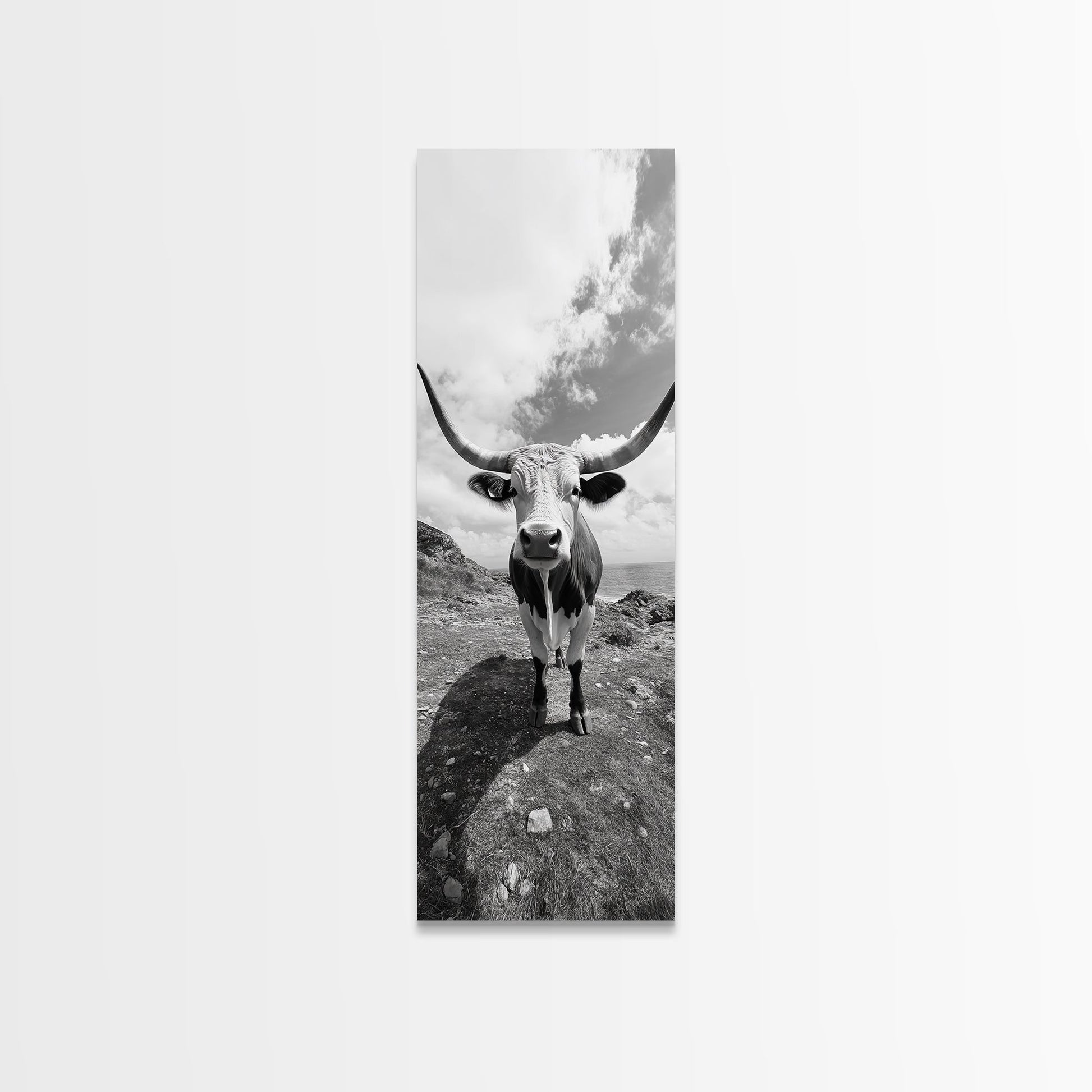 Texas Longhorn Art, Canvas Print, rustic decor, bull and bear art, cowboy western wall art, farmhouse decor, barn landscape oil painting