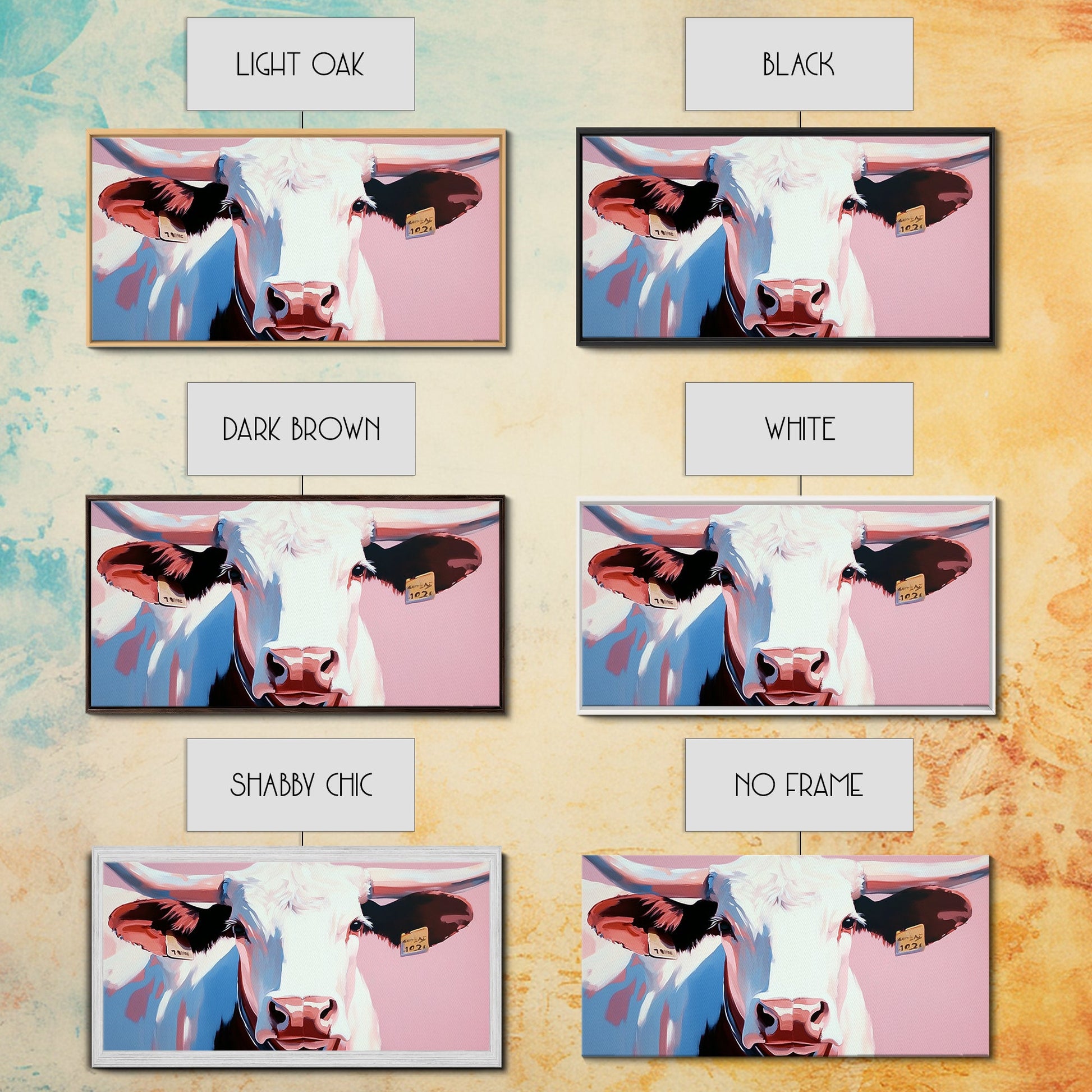 Texas Longhorn, Rustic Wall Art, Bull and Bear Art, Southwest Wall Art, Extra Wide Art, Pink Orange Wall Art, Canvas Print, Farmhouse Art