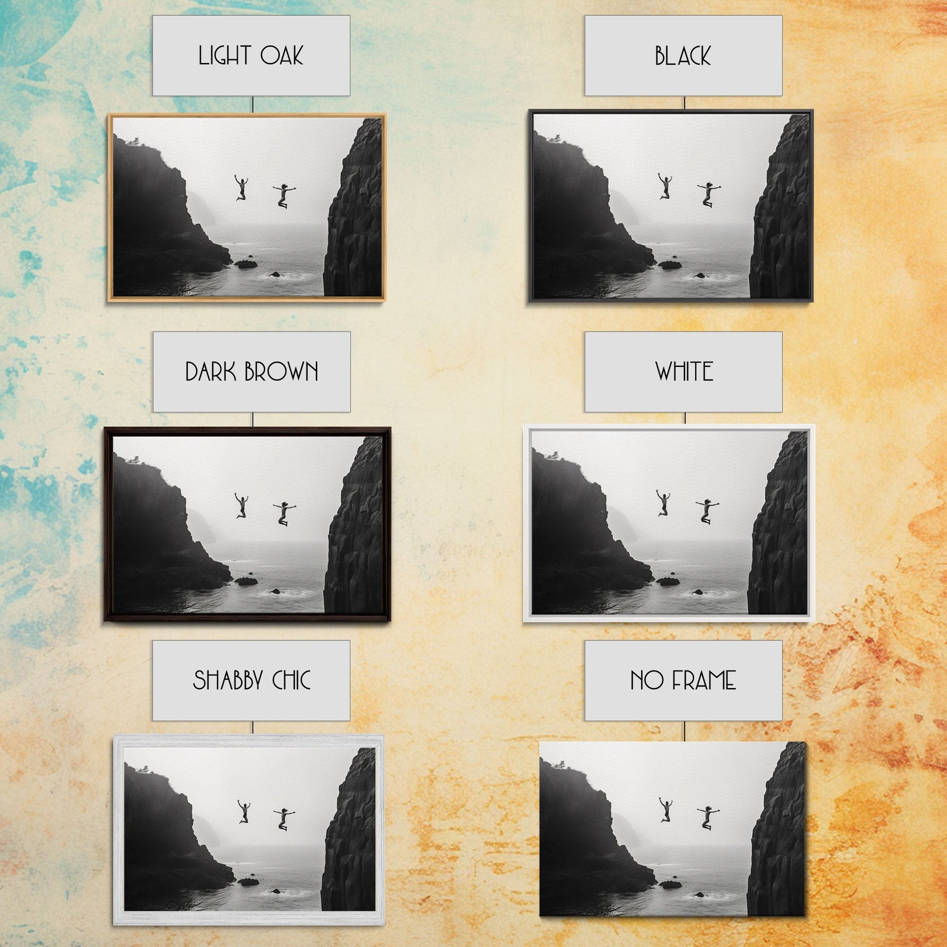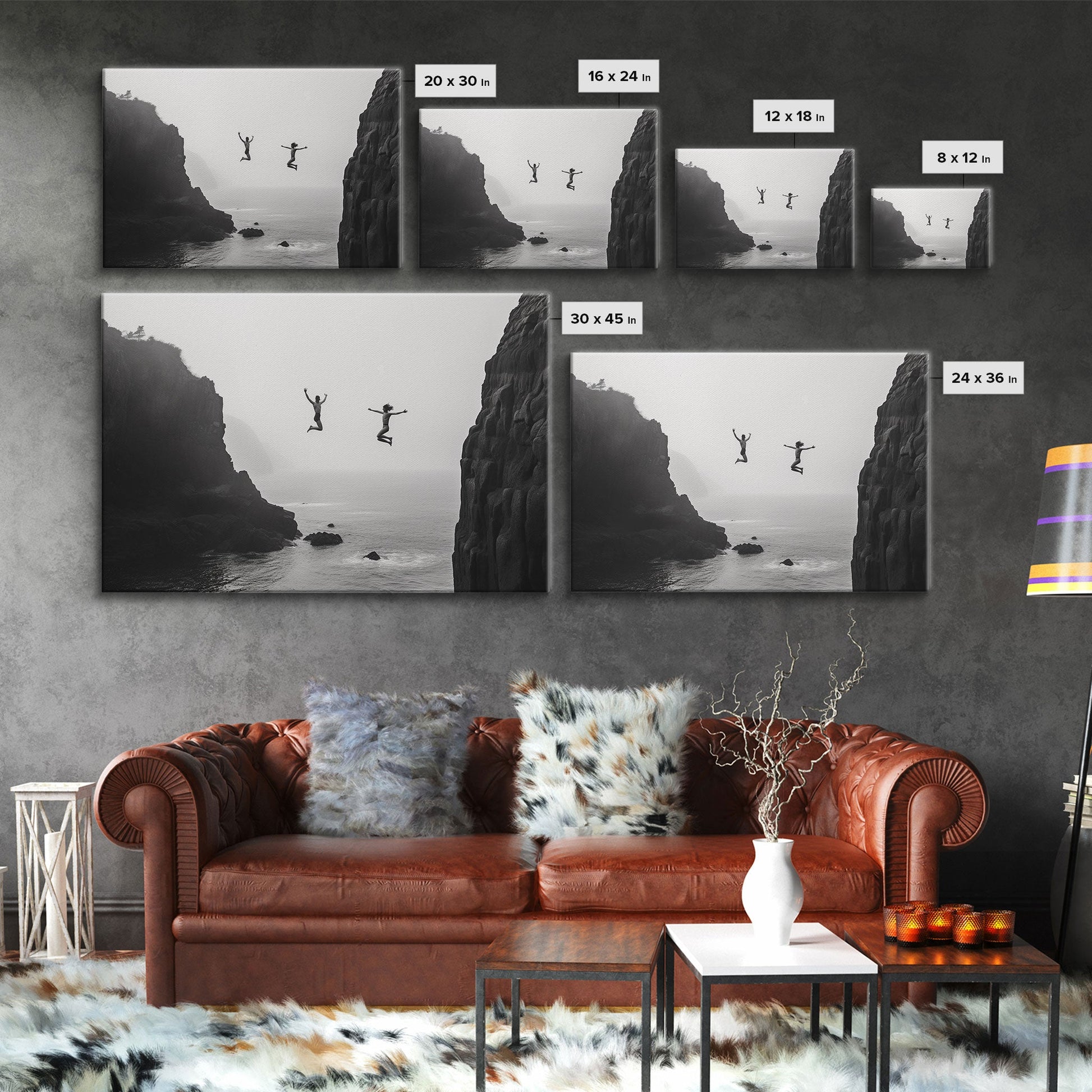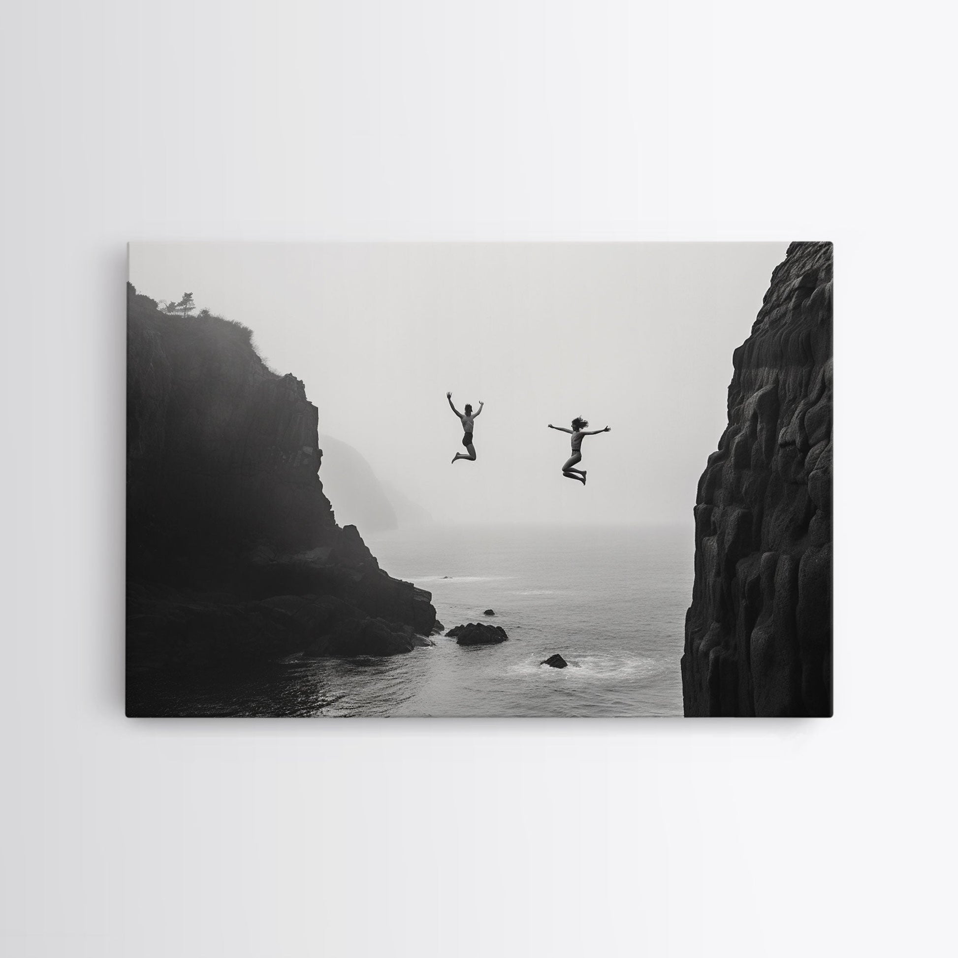 The Dive - Fine Art Black and White Print - Wood Framed Canvas or Metal Print - Cliff Diving In The Ocean - Lifestyle Minimalist Home Decor