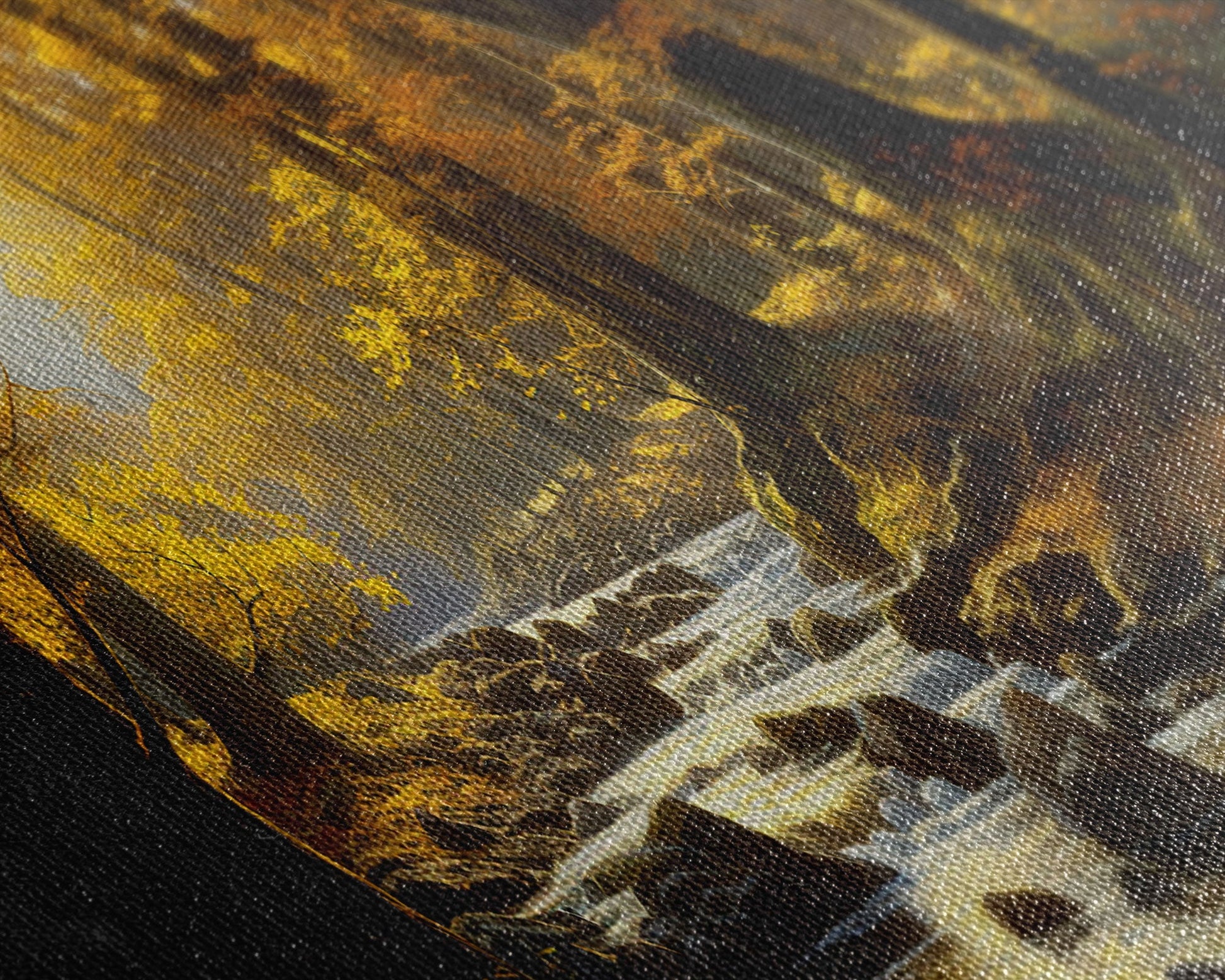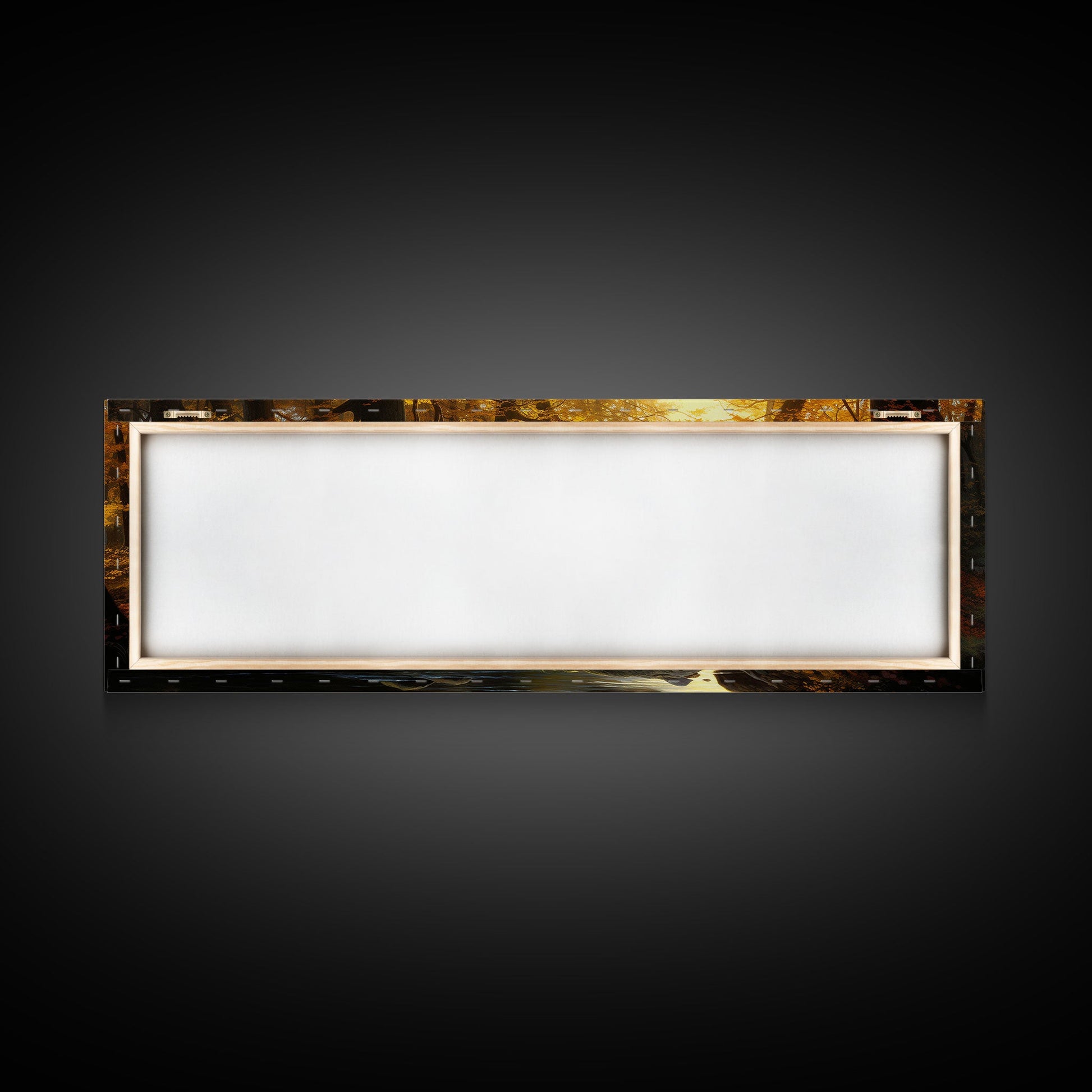 The Forest In The Autumn, Fall Centerpiece, Panoramic Painting Framed Canvas Print, Fall Decor, Orange Leaves Falling In The Forest